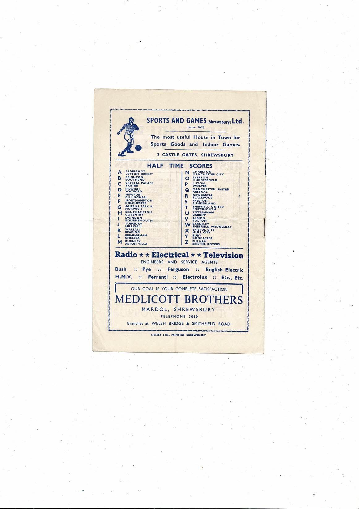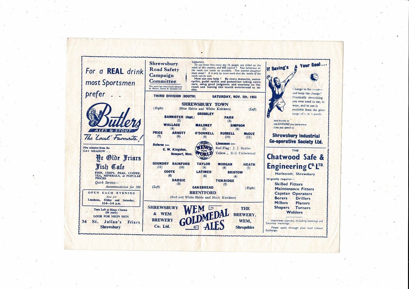 1955/56 Shrewsbury Town v Brentford Football Programme