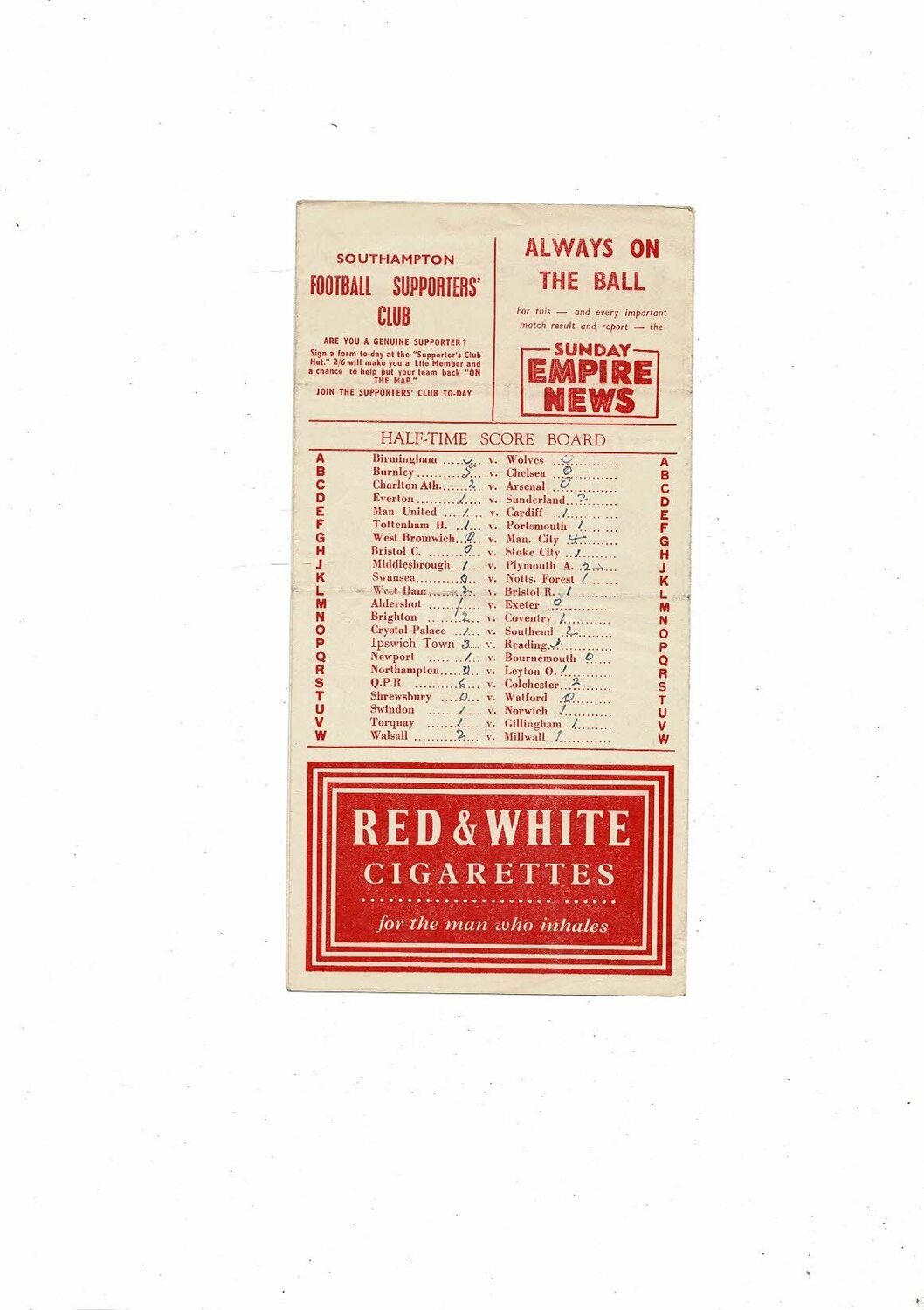 This Original Football Programme is creased & folded with half times noted, tiny nic on spine & back page. Please see scans.