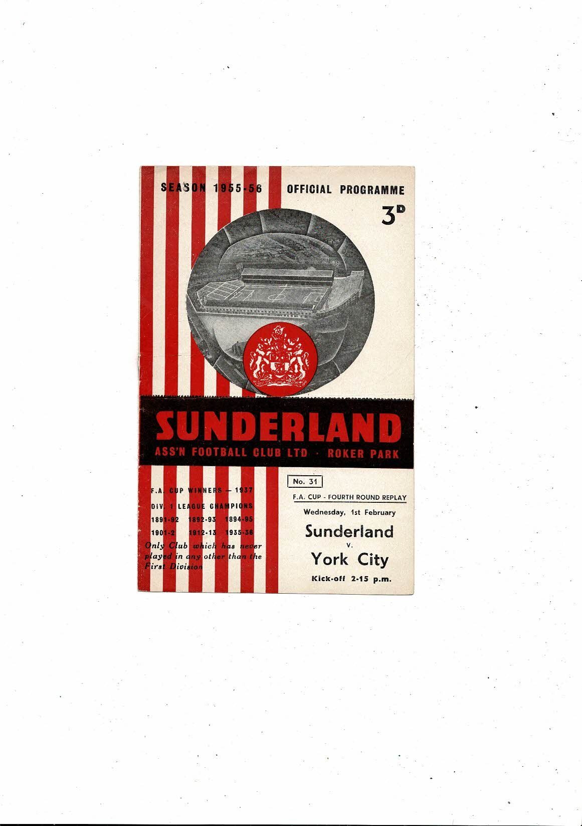 1955/56 Sunderland v York City FA Cup Replay Football Programme