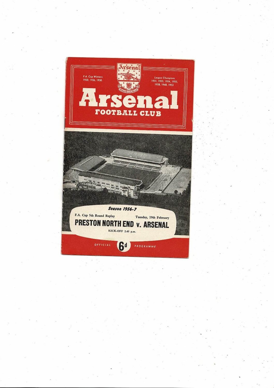 1956/57 Arsenal v Preston FA Cup Replay Football Programme