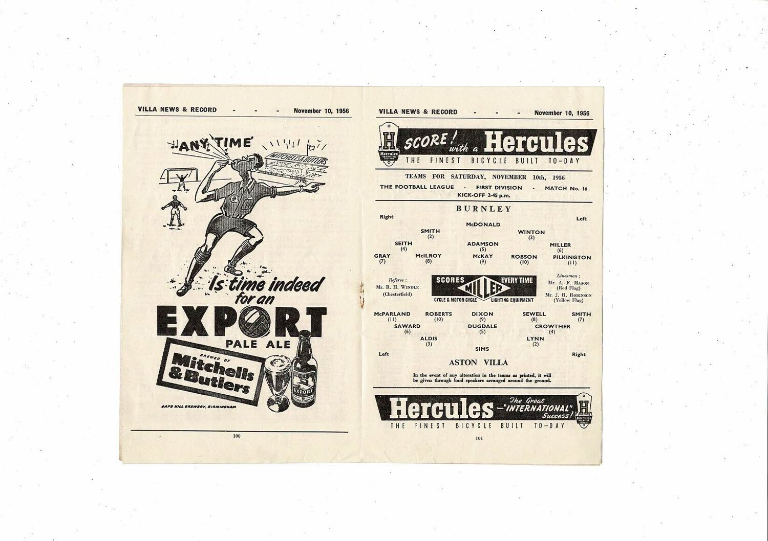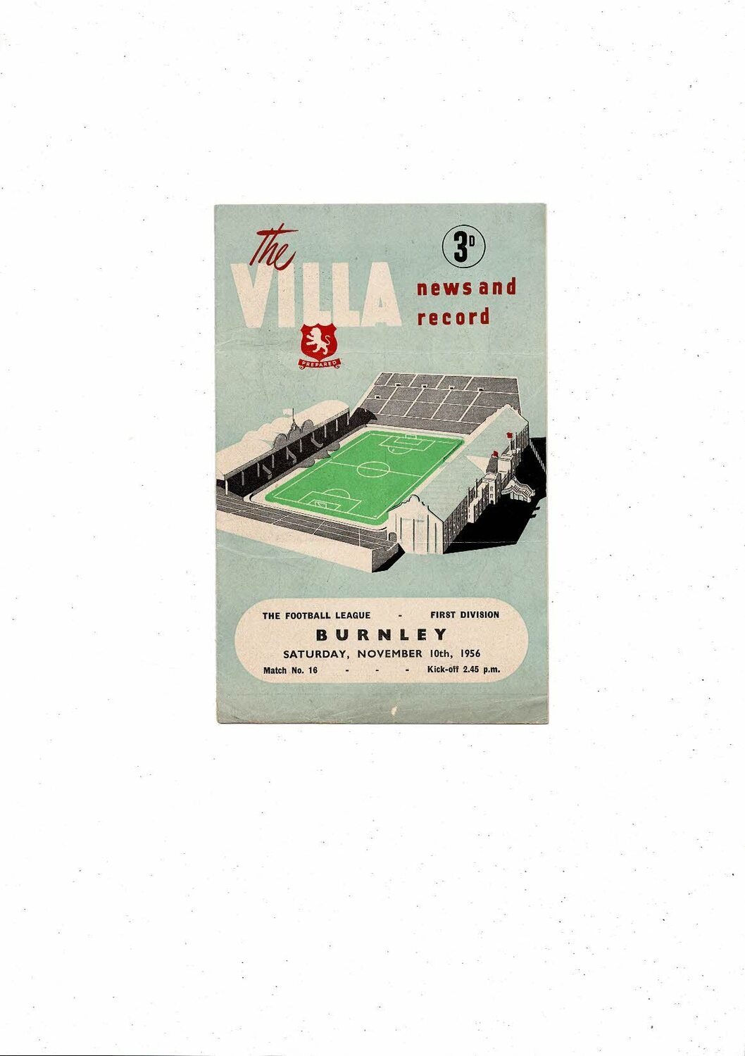 1956/57 Aston Villa v Burnley Football Programme