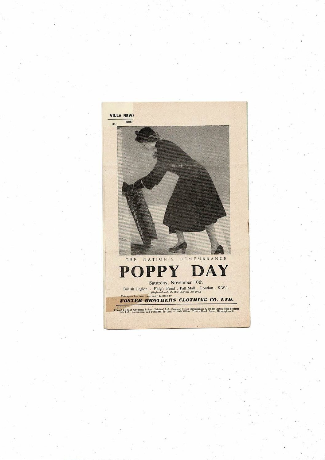 This Original Football Programme is creased & folded with several small tears, top corner piece missing on back page, small piece missing on front cover & some staining. No handwriting