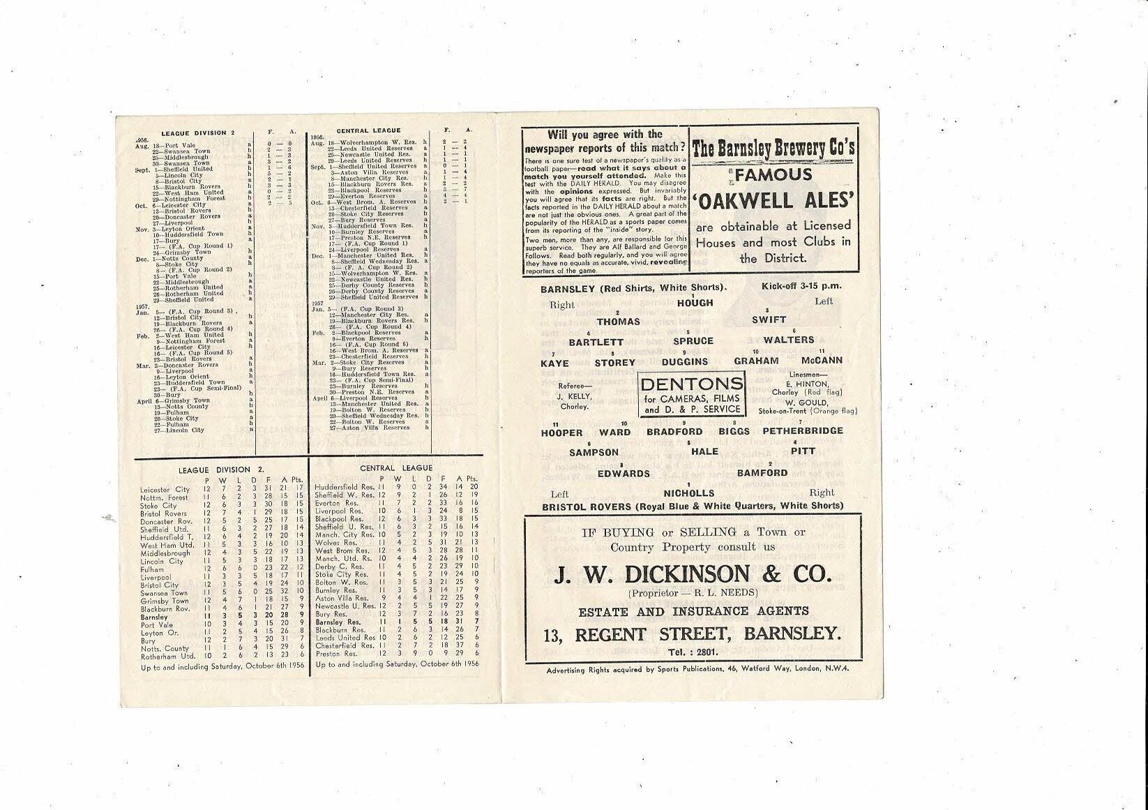 1956/57 Barnsley v Bristol Rovers Football Programme
