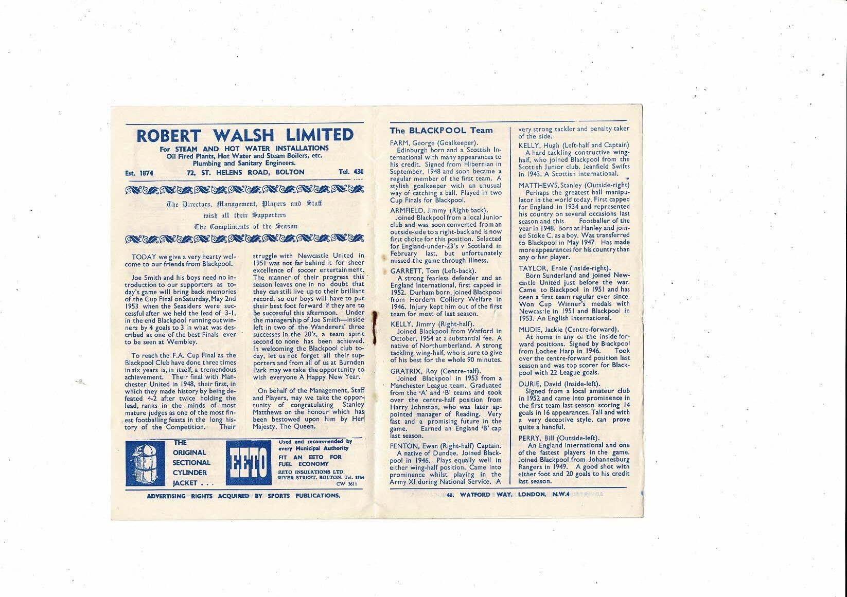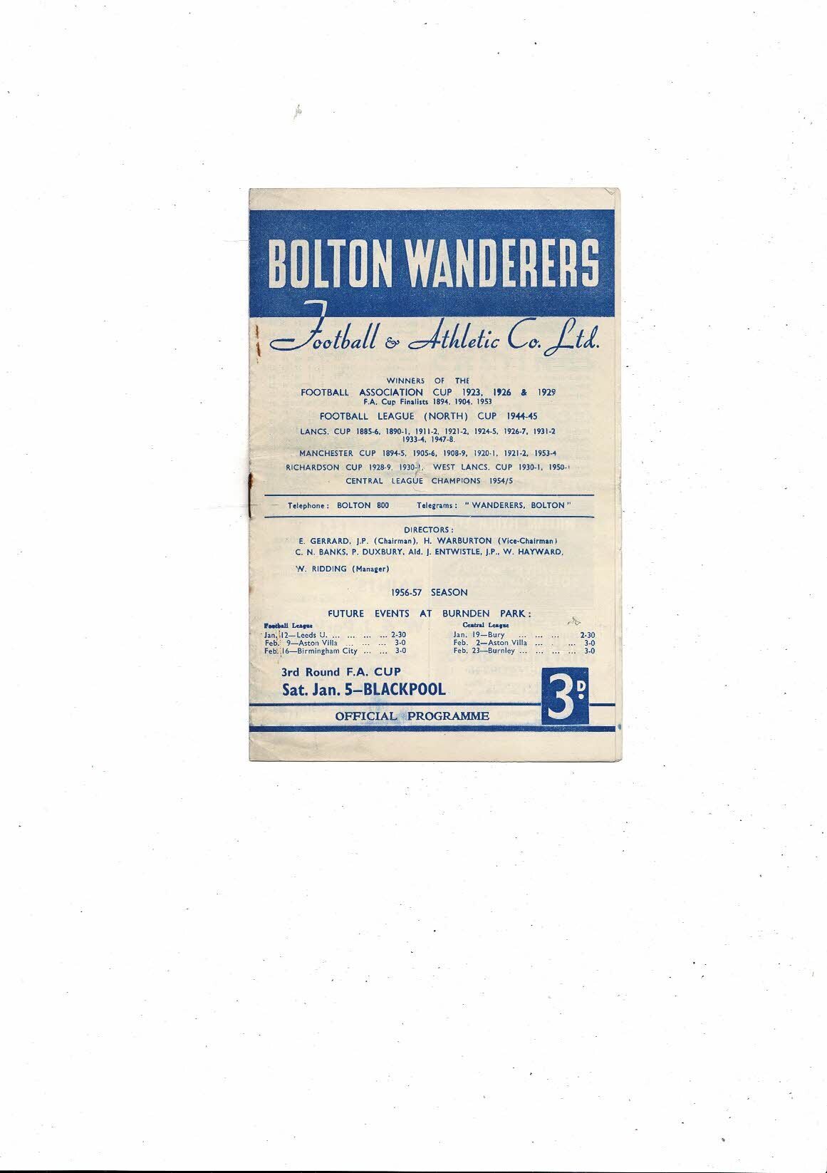 1956/57 Bolton Wanderers v Blackpool FA Cup Football Programme