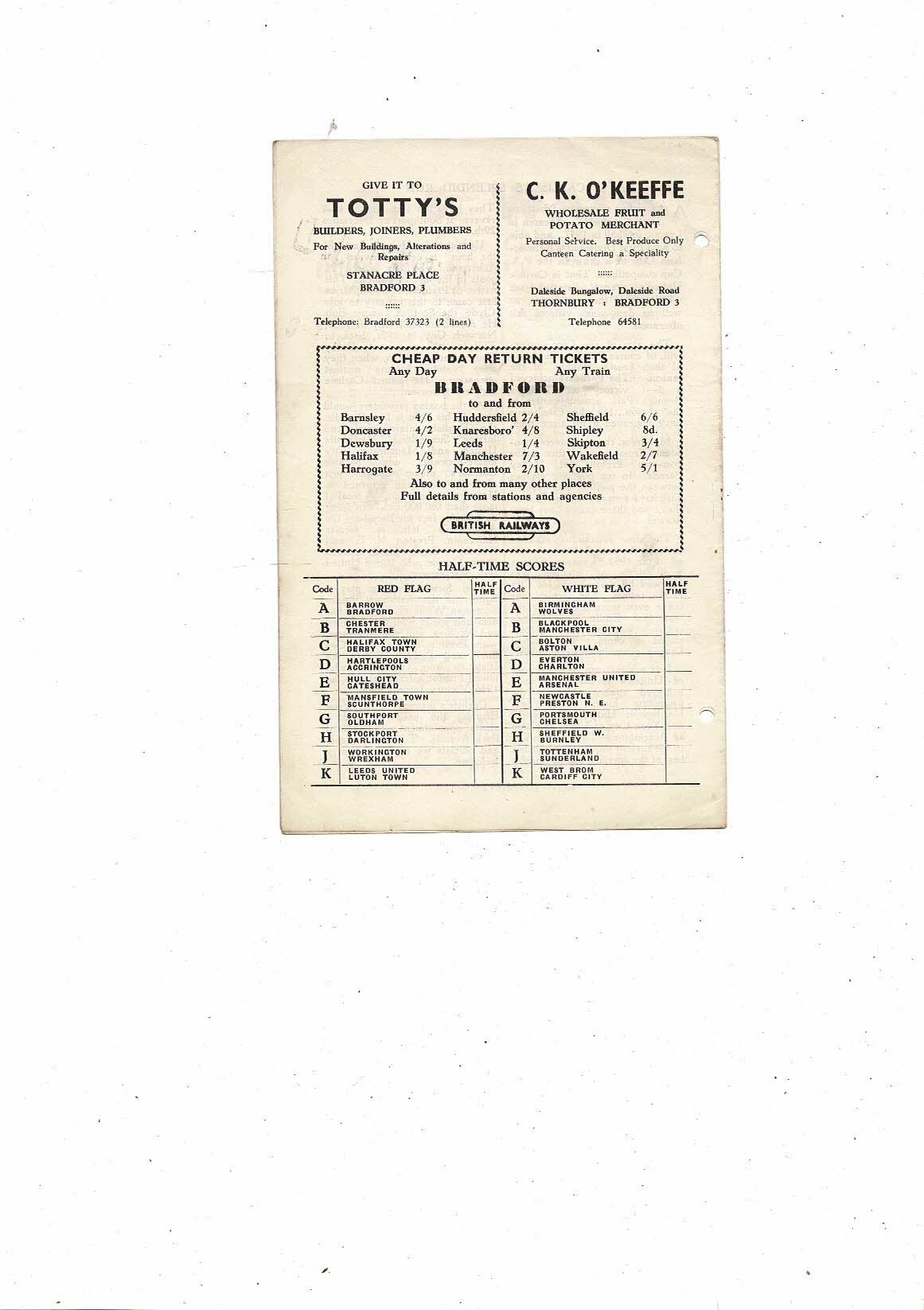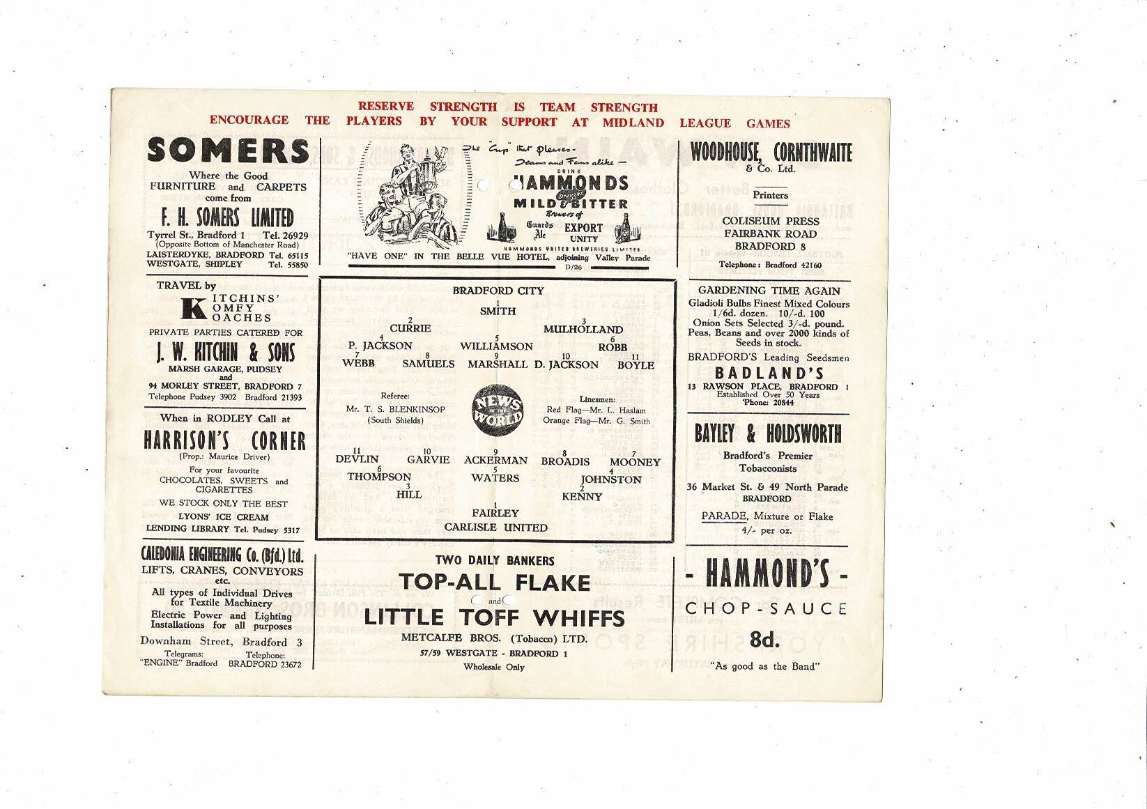 1956/57 Bradford City v Carlisle United Football Programme