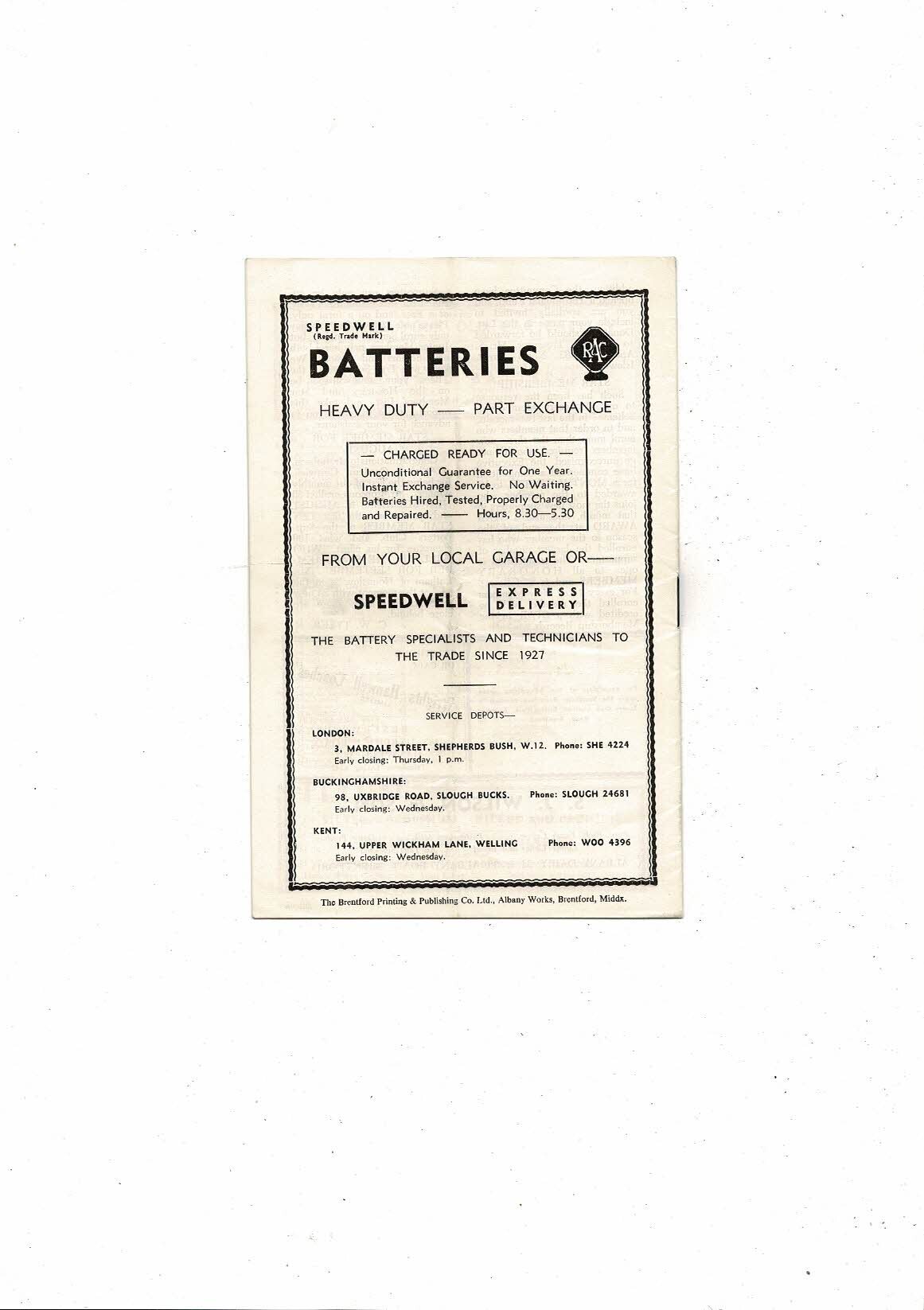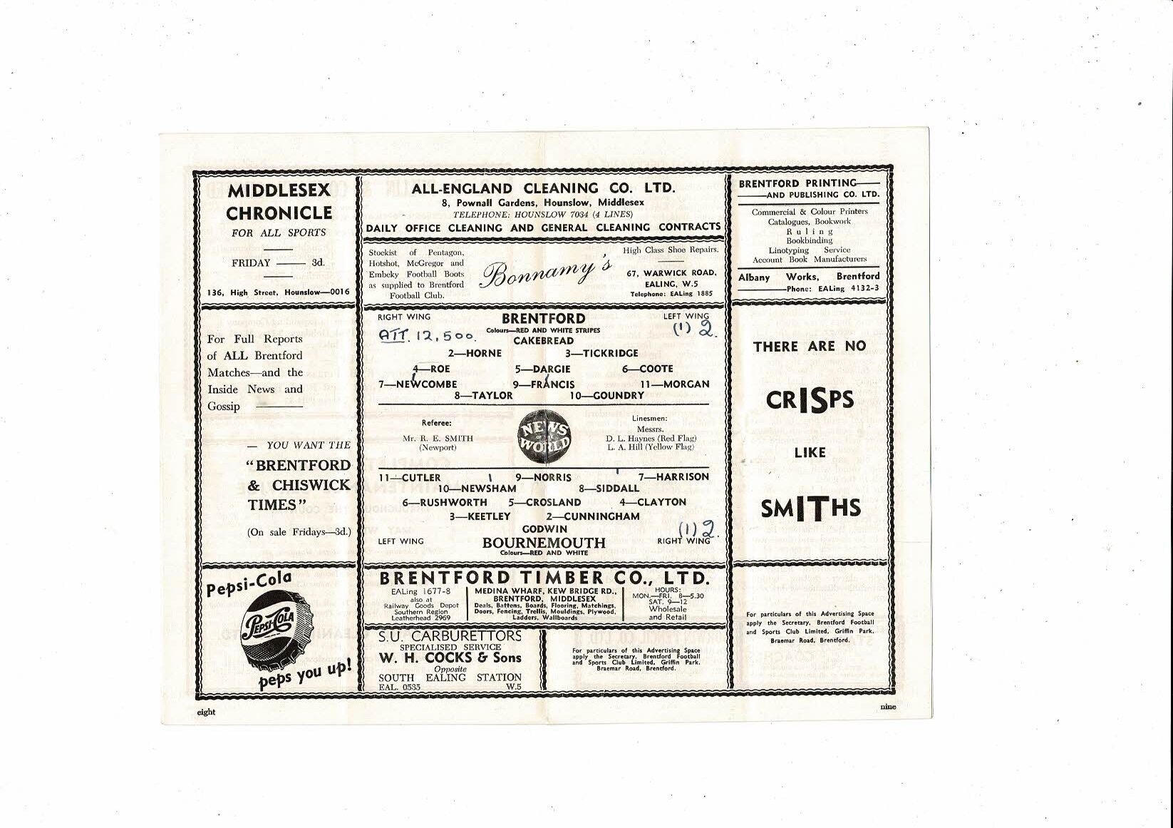 1956/57 Brentford v Bournemouth Football Programme