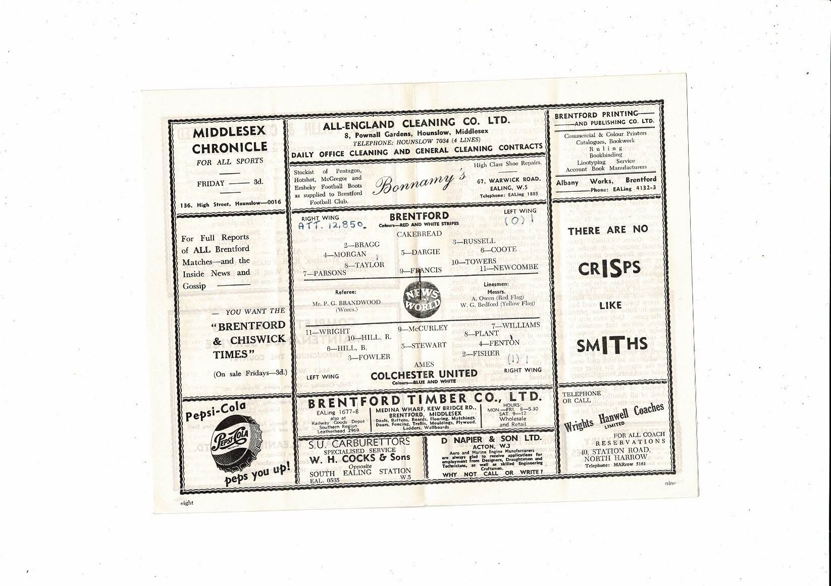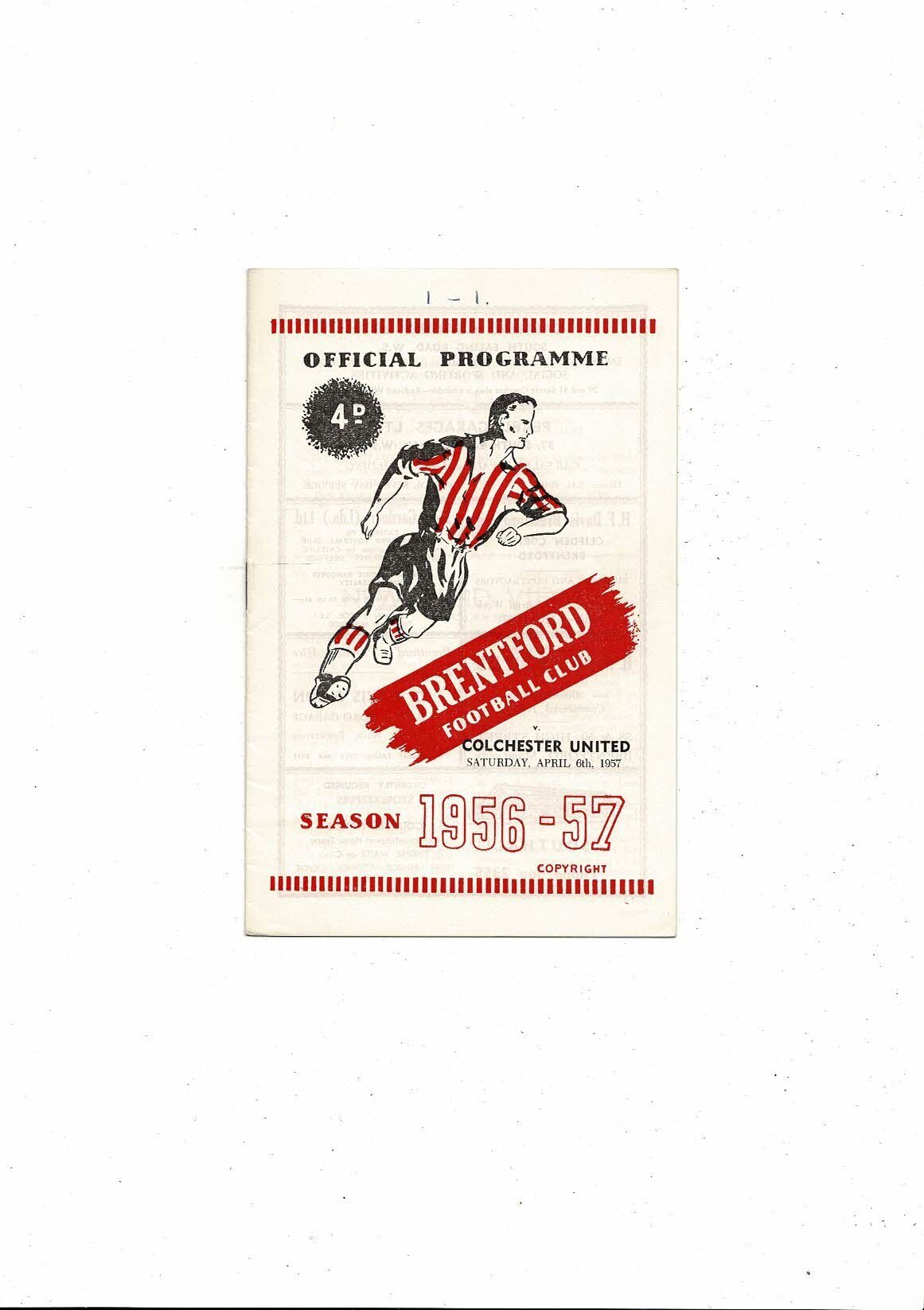 1956/57 Brentford v Colchester United Football Programme