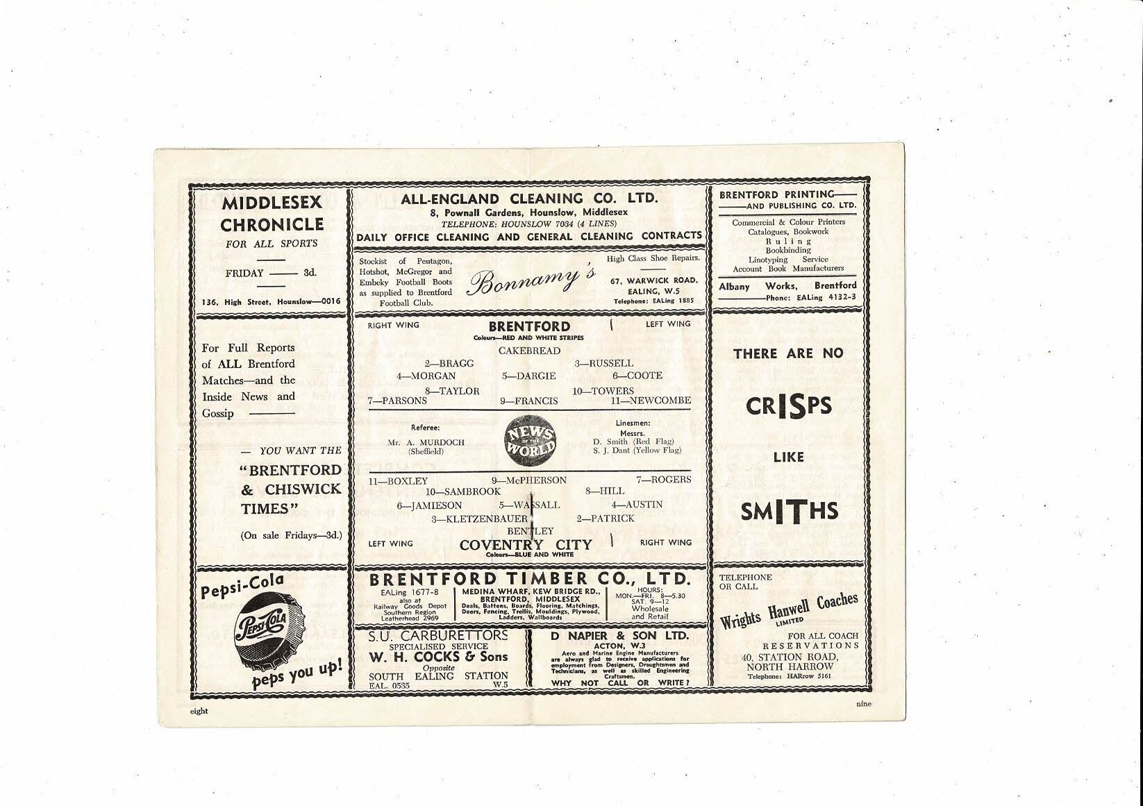 1956/57 Brentford v Coventry City Football Programme