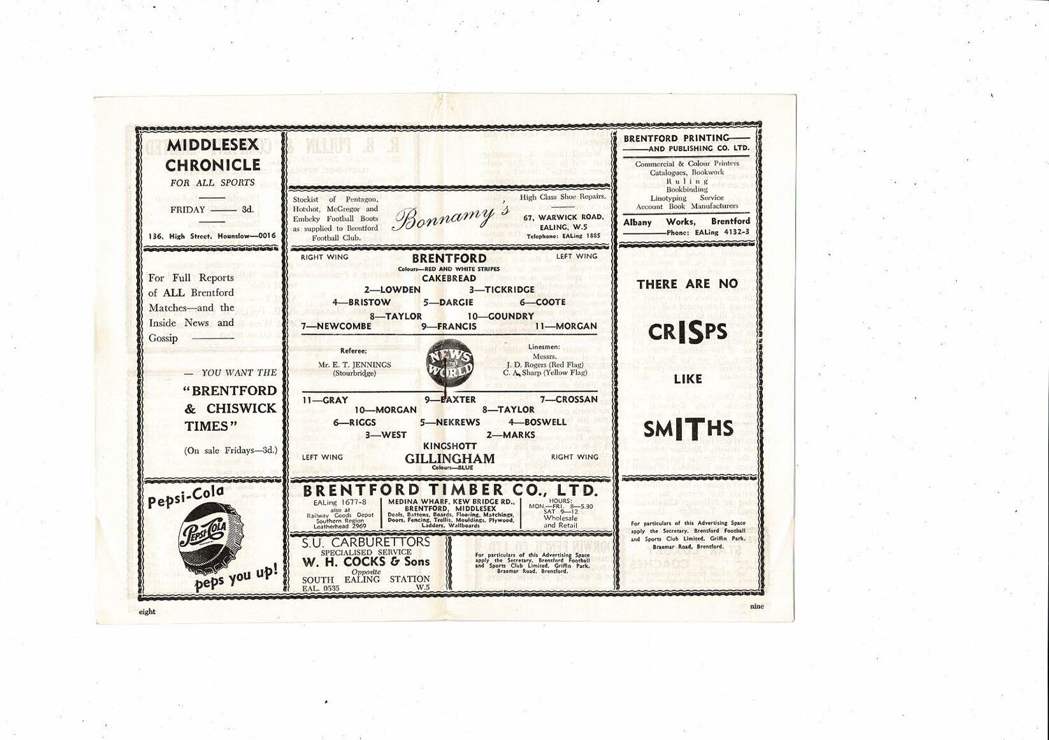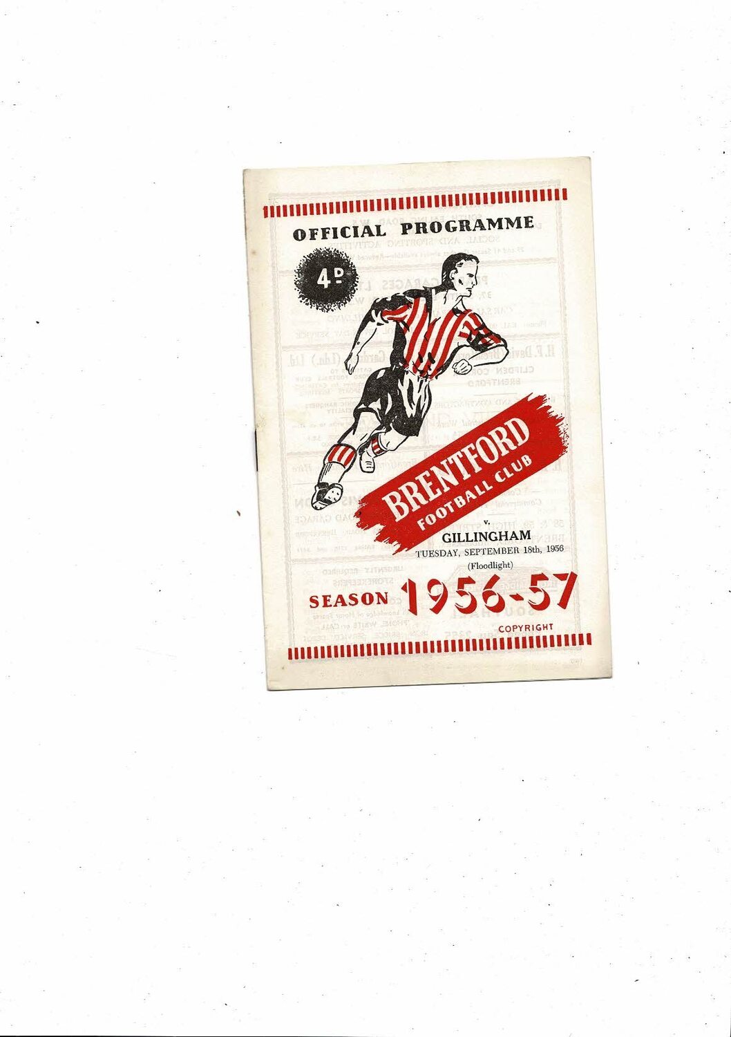 1956/57 Brentford v Gillingham Football Programme