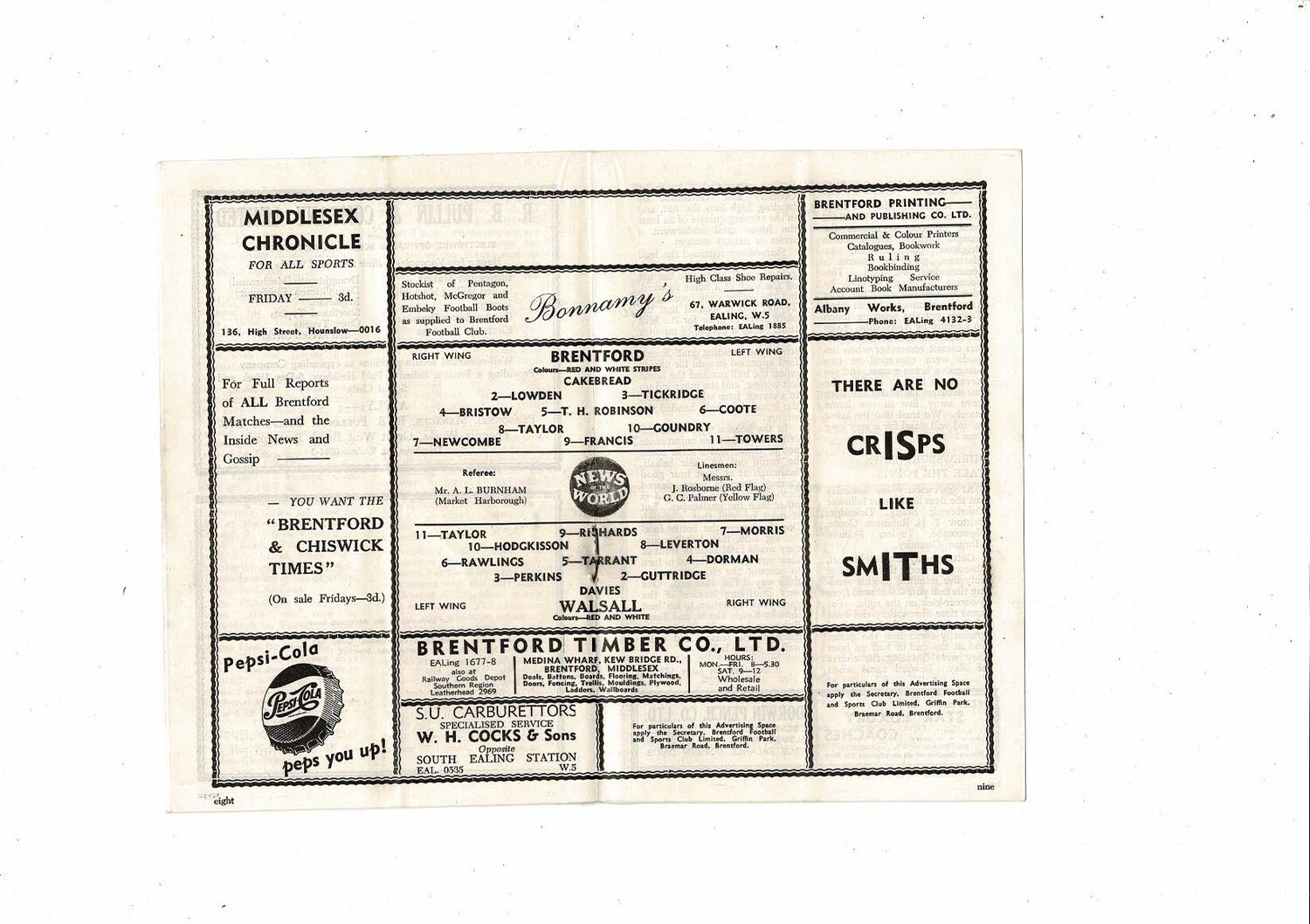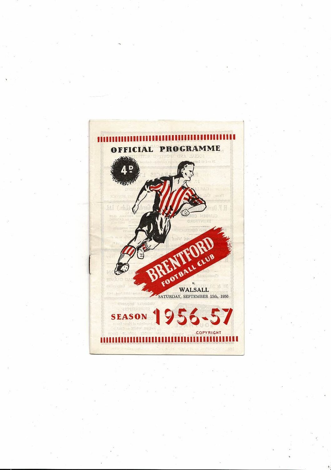 1956/57 Brentford v Walsall Football Programme