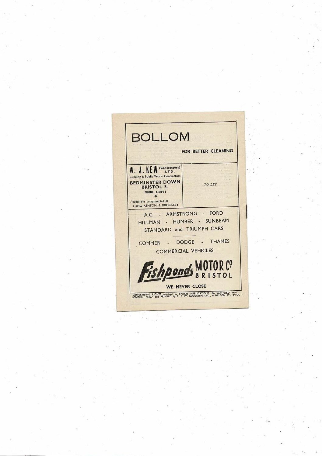 This original Football Programme is slightly creased with some very minor staining to front cover & staple just starting to rust. No handwriting