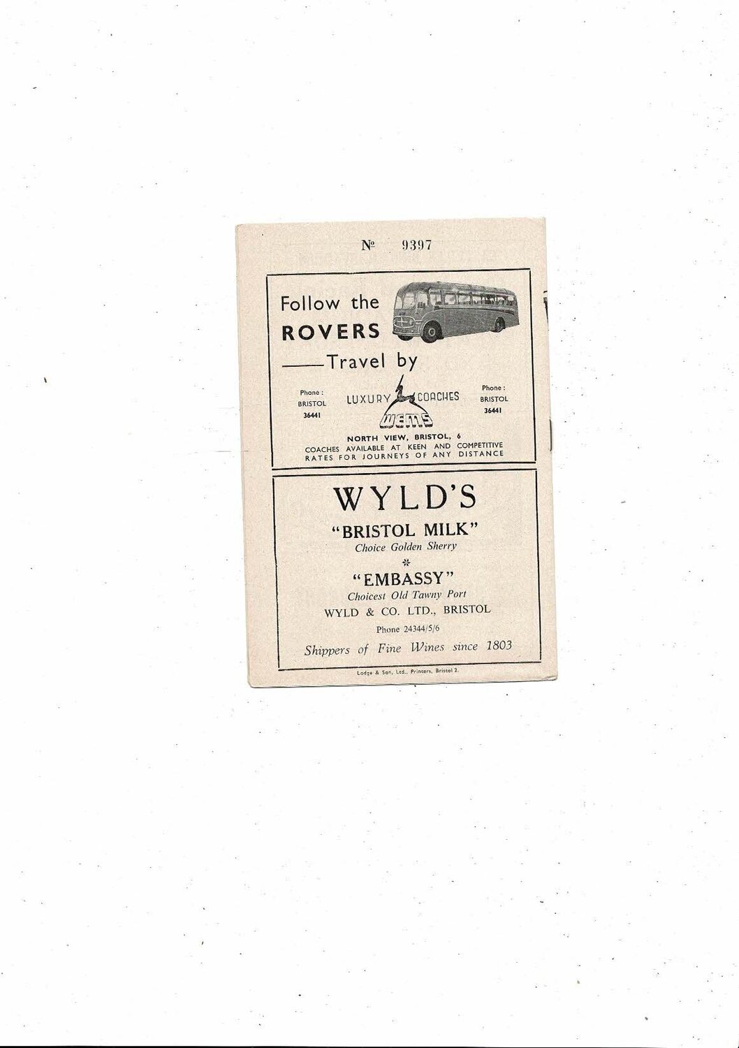 1956/57 Bristol Rovers v Leyton Orient Football Programme