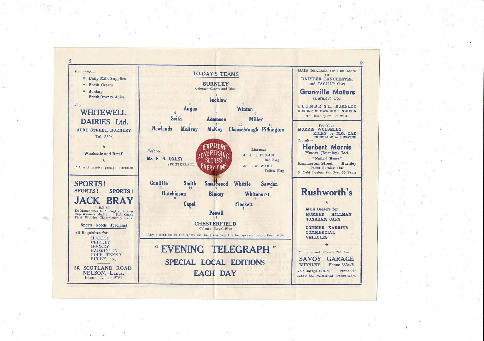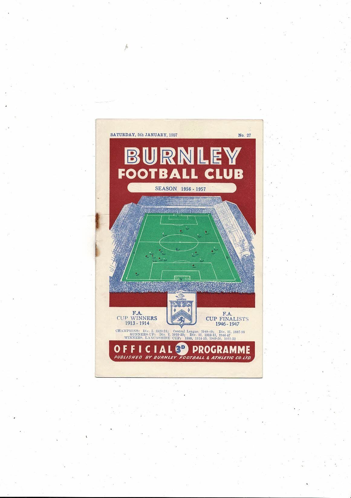 1956/57 Burnley v Chesterfield FA Cup Round Three Football Programme