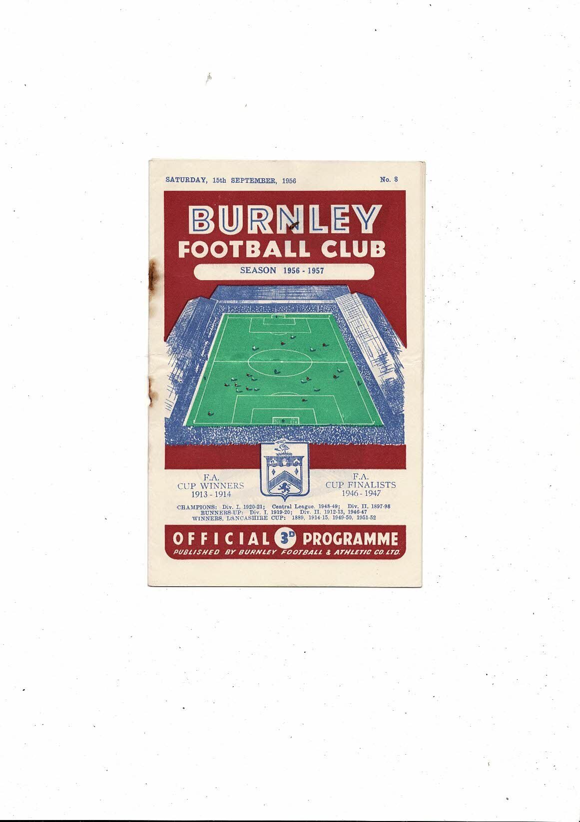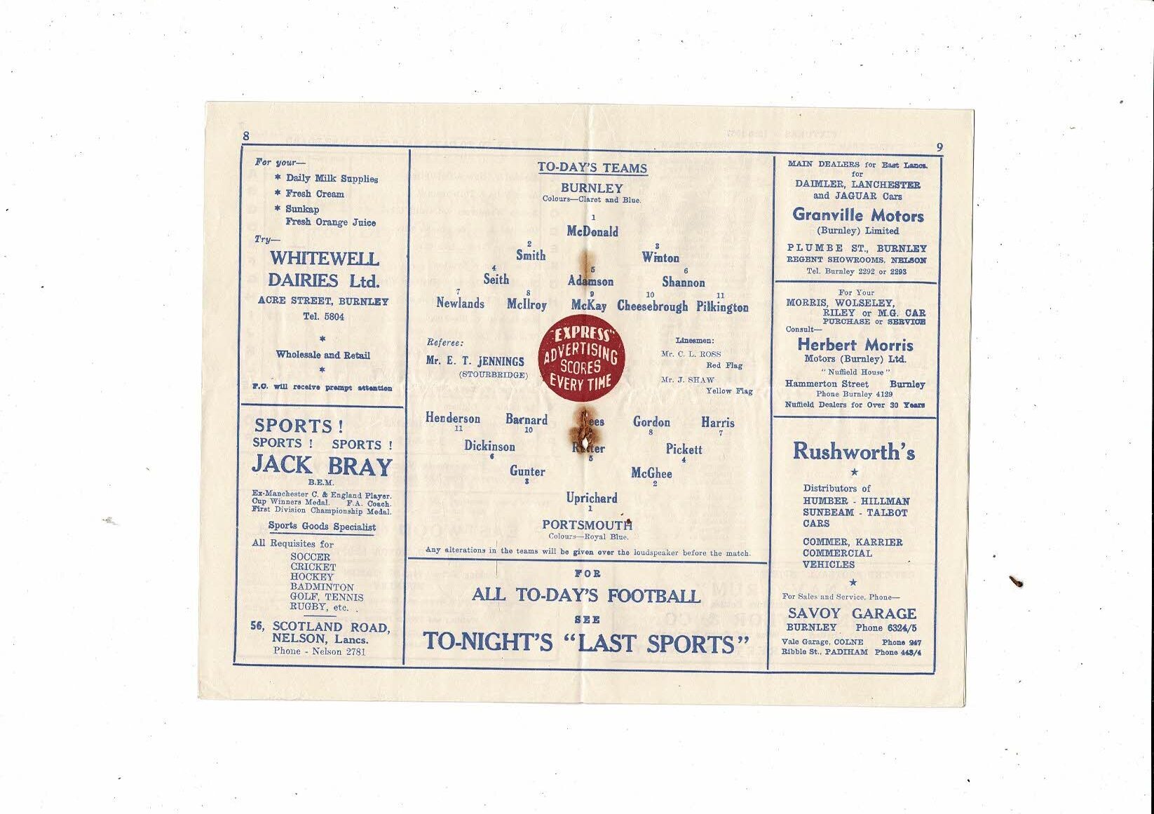 1956/57 Burnley v Portsmouth Football Programme