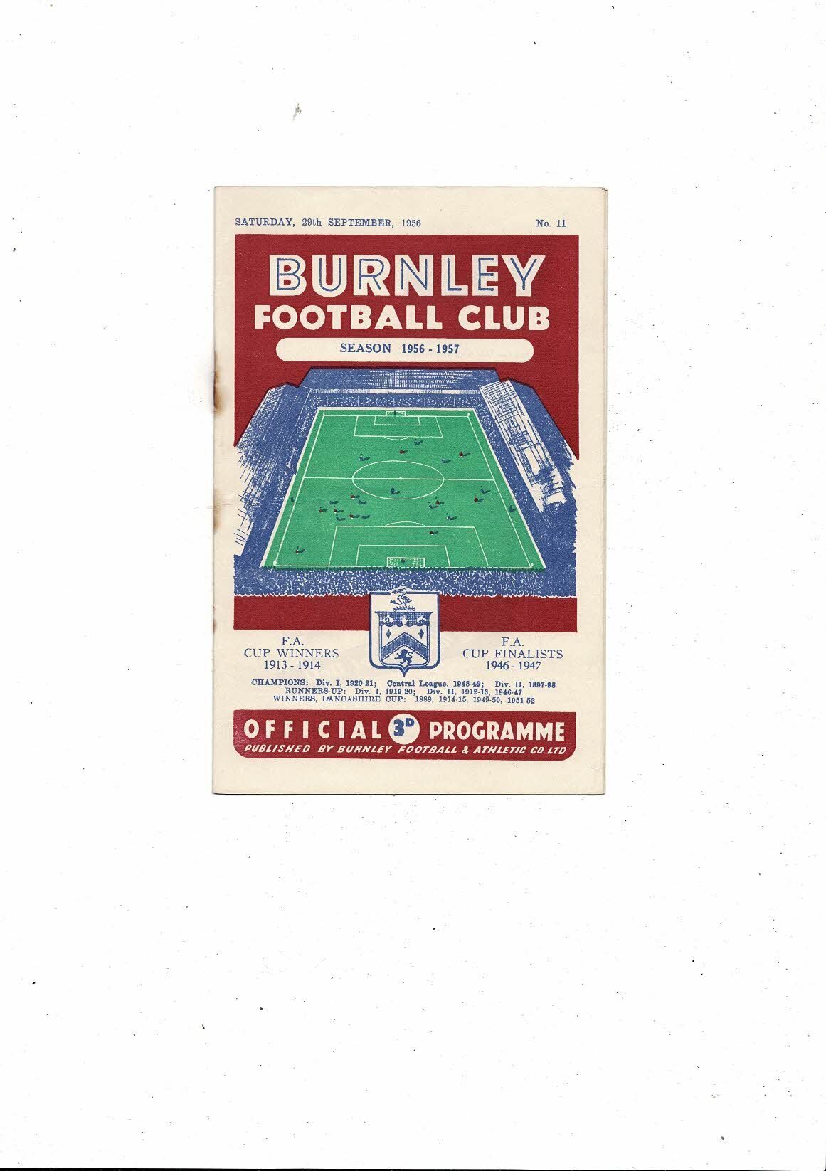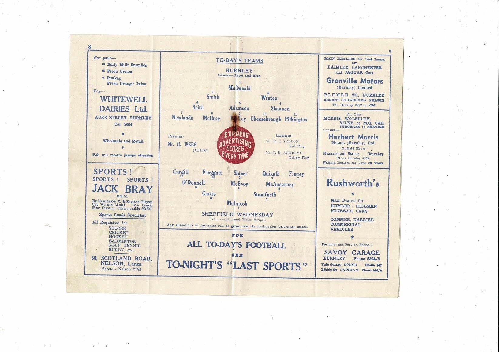1956/57 Burnley v Sheffield Wednesday Football Programme