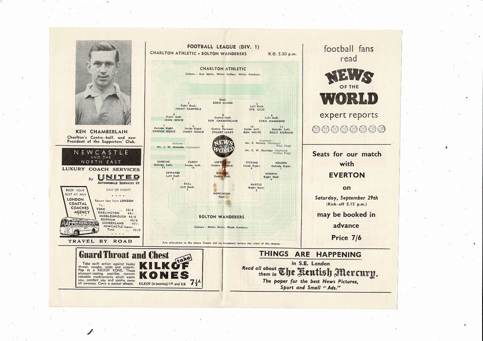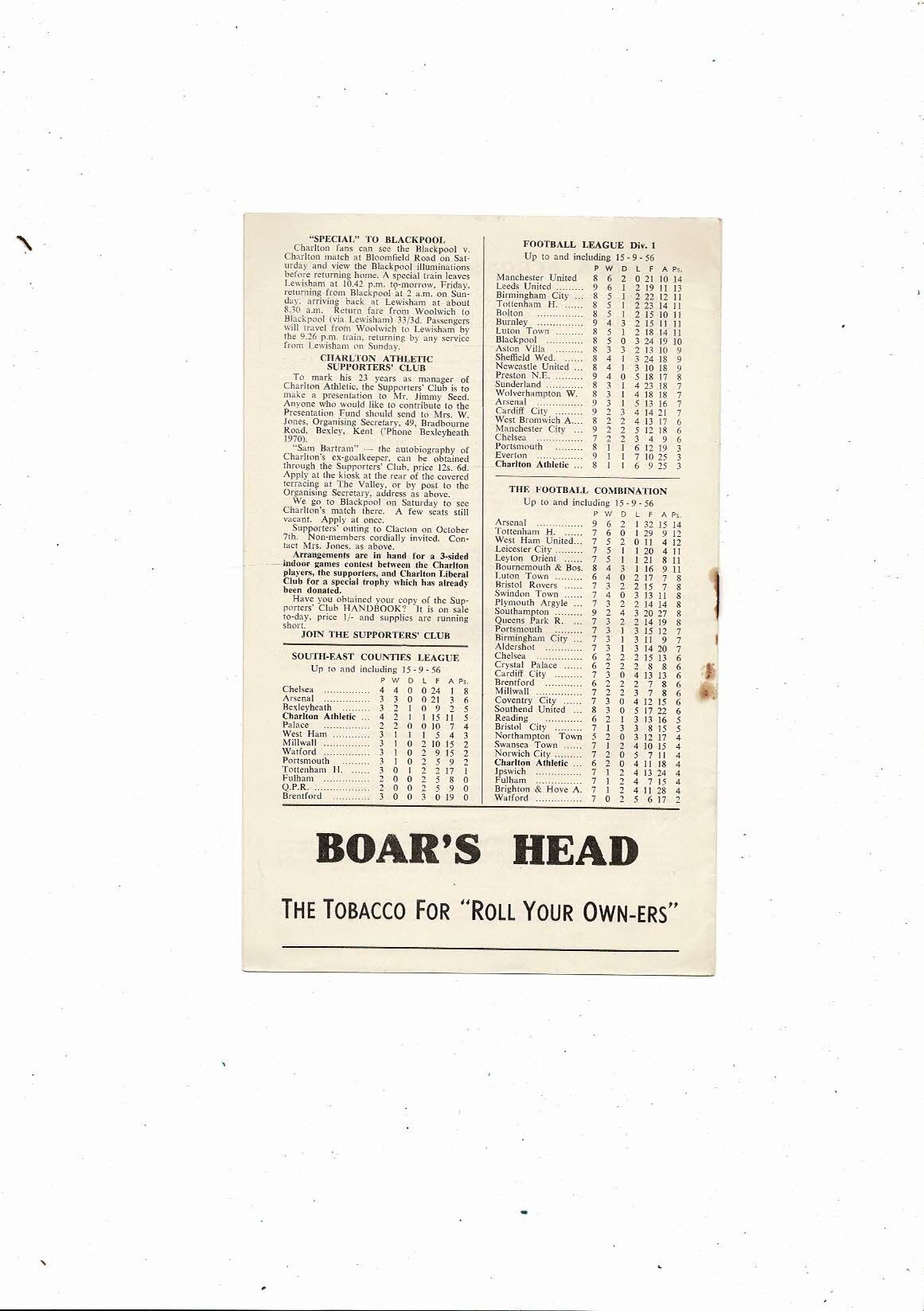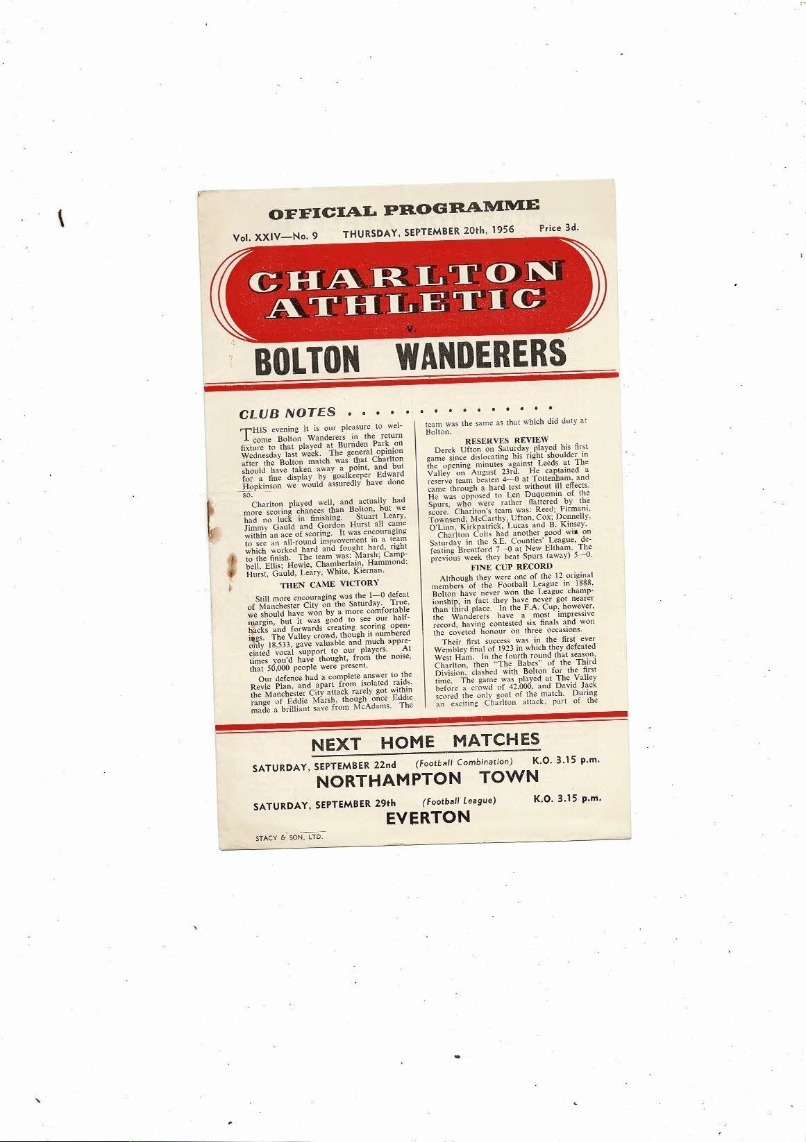 1956/57 Charlton Athletic v Bolton Wanderers Football Programme