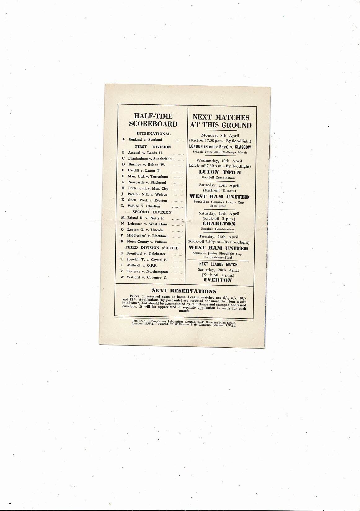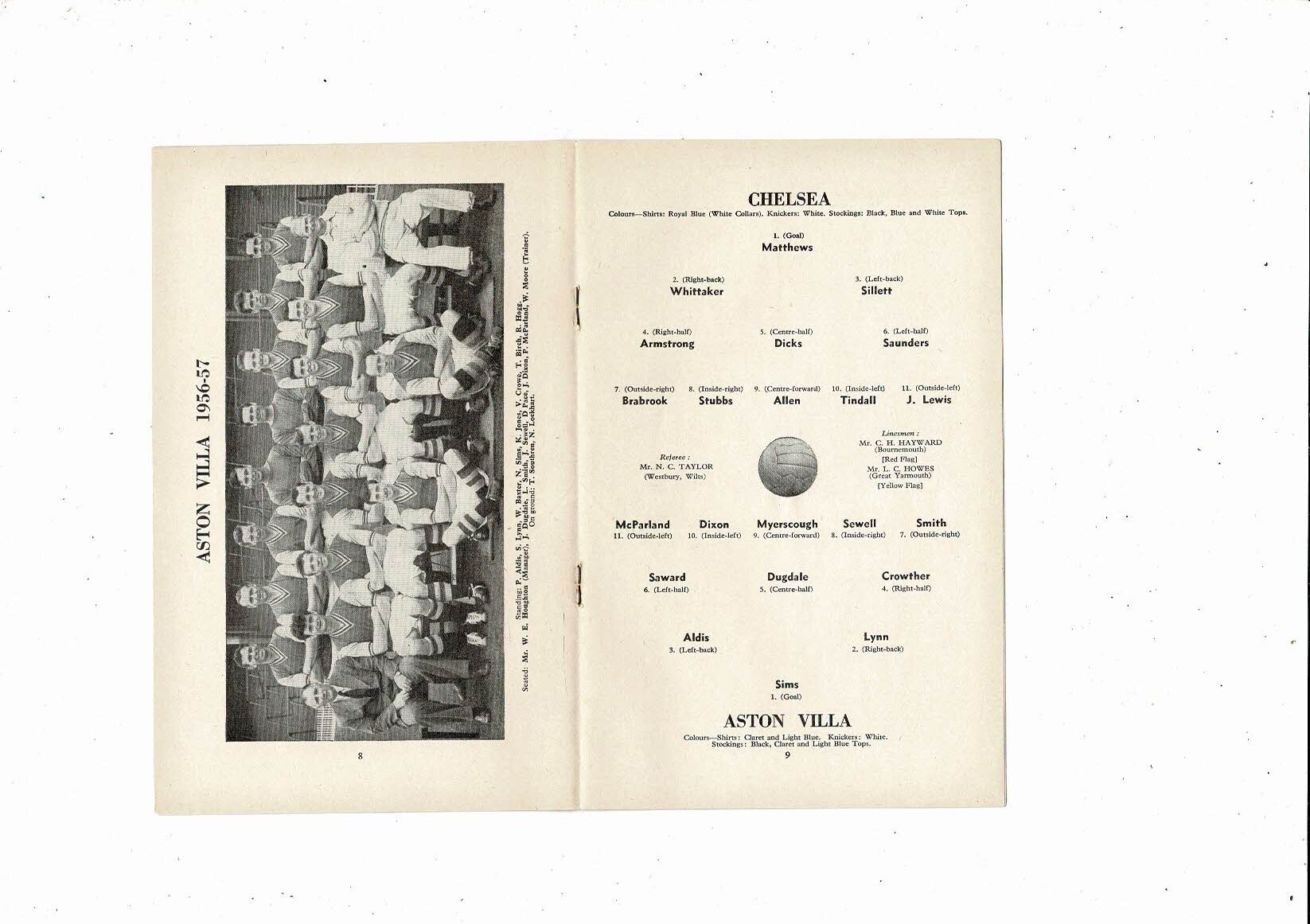 1956/57 Chelsea v Aston Villa Football Programme
