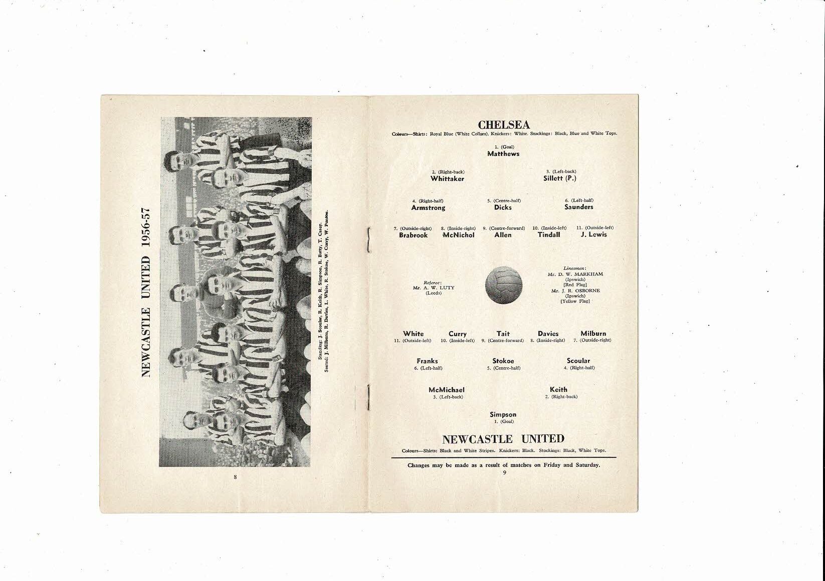 1956/57 Chelsea v Newcastle United Football Programme