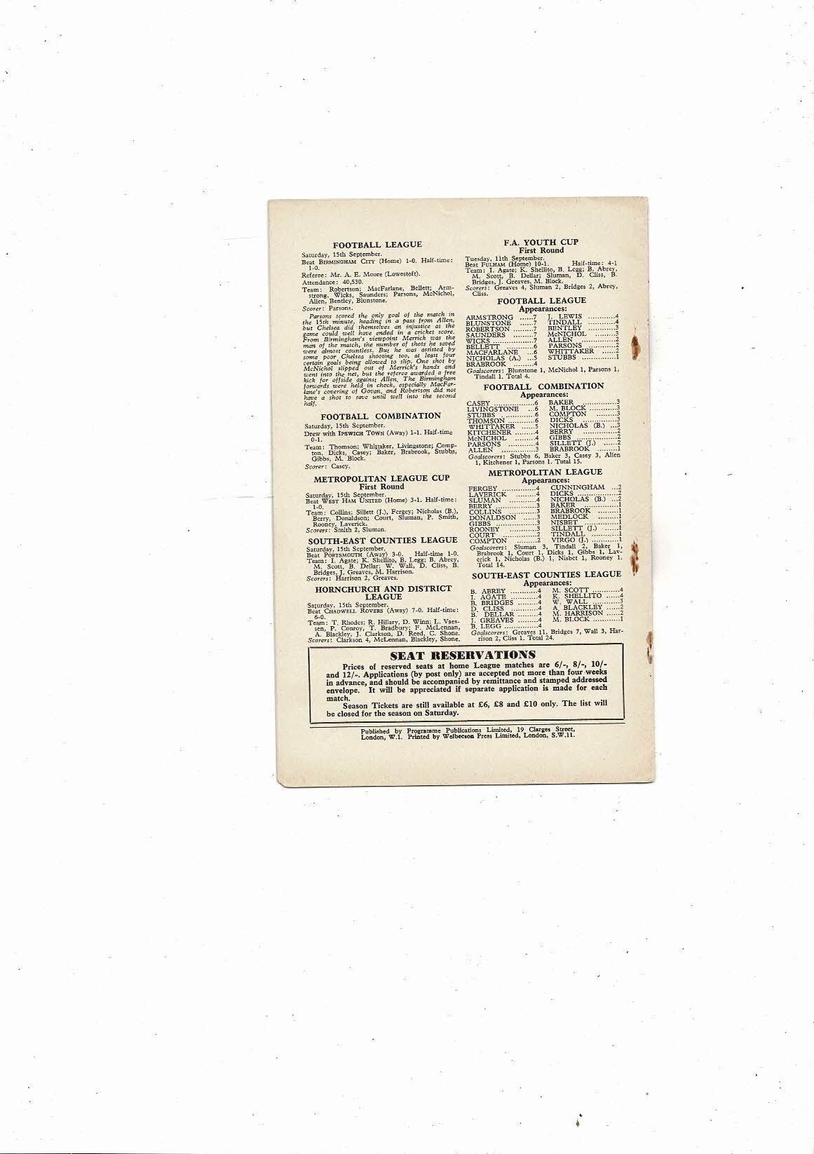 1956/57 Chelsea v Sheffield Wednesday Football Programme