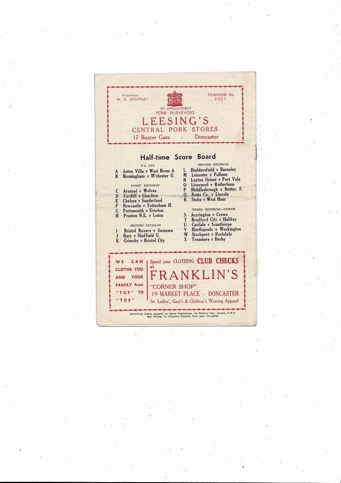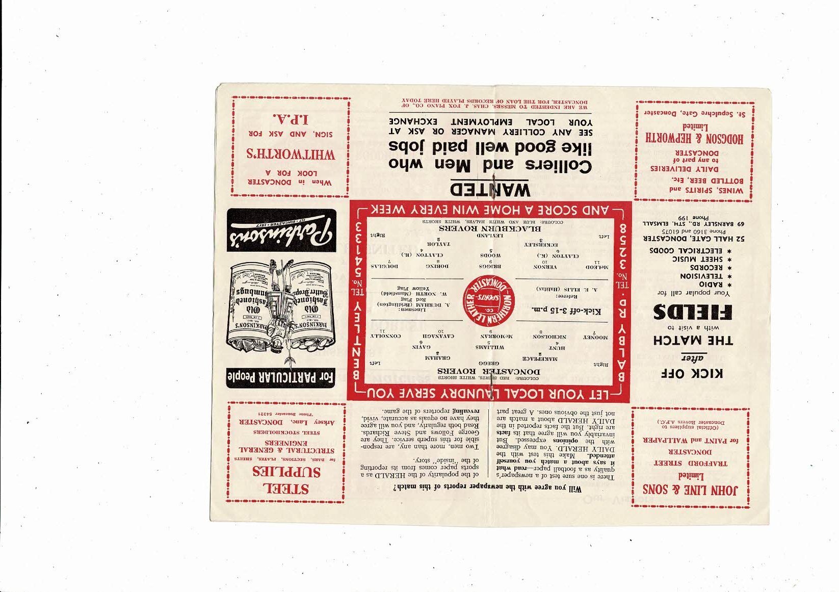 1956/57 Doncaster Rovers v Blackburn Rovers Football Programme