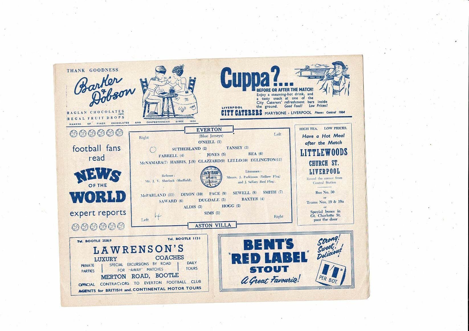 1956/57 Everton v Aston Villa Football Programme