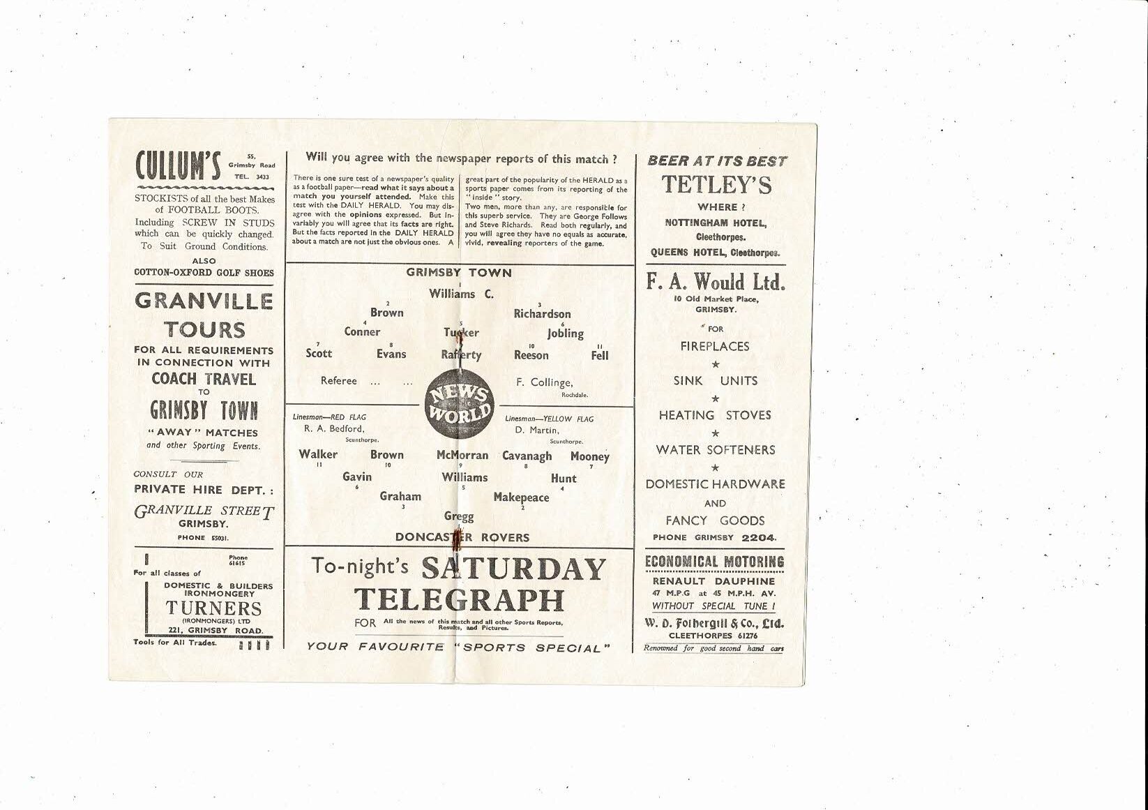 1956/57 Grimsby Town v Doncaster Rovers Football Programme