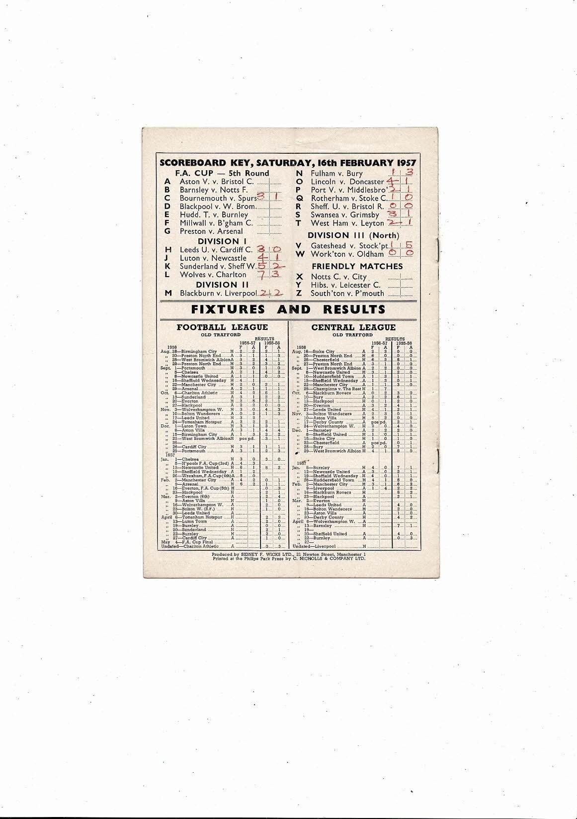 1956/57 Manchester United v Everton FA Cup Football Programme