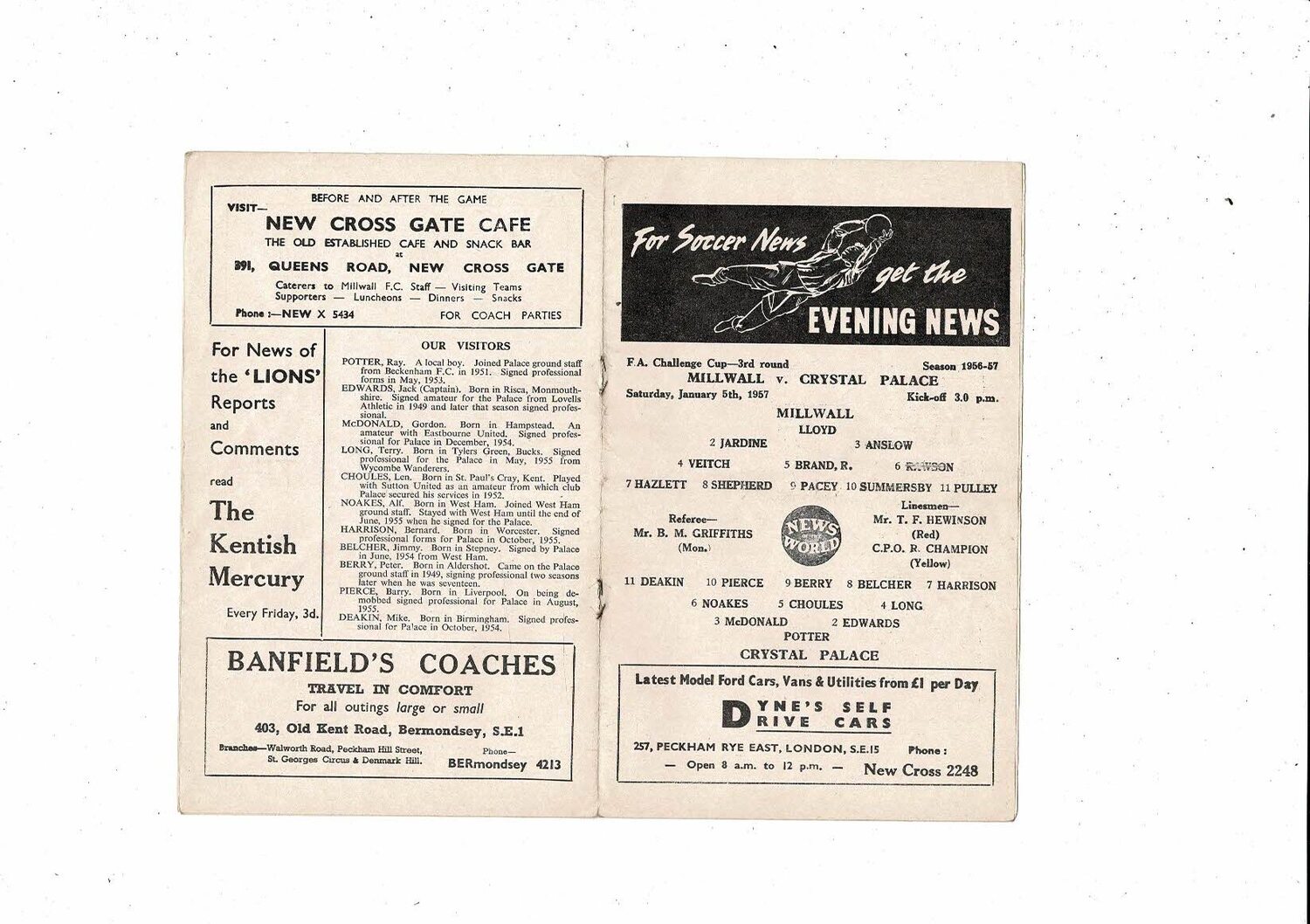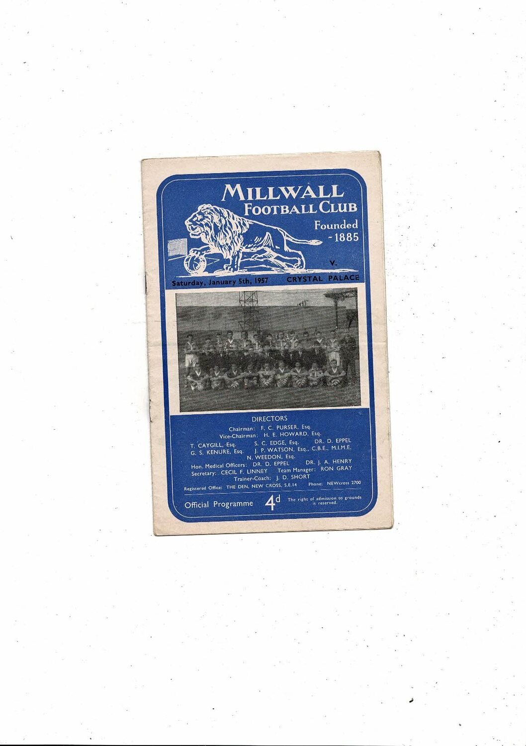 1956/57 Millwall v Crystal Palace FA Cup Football Programme