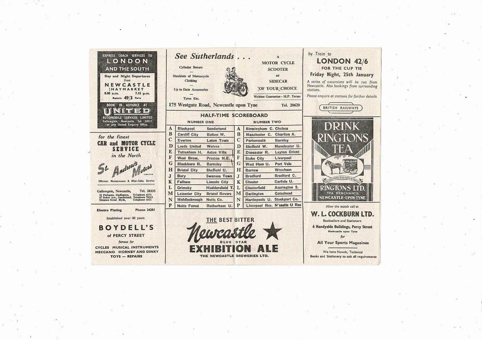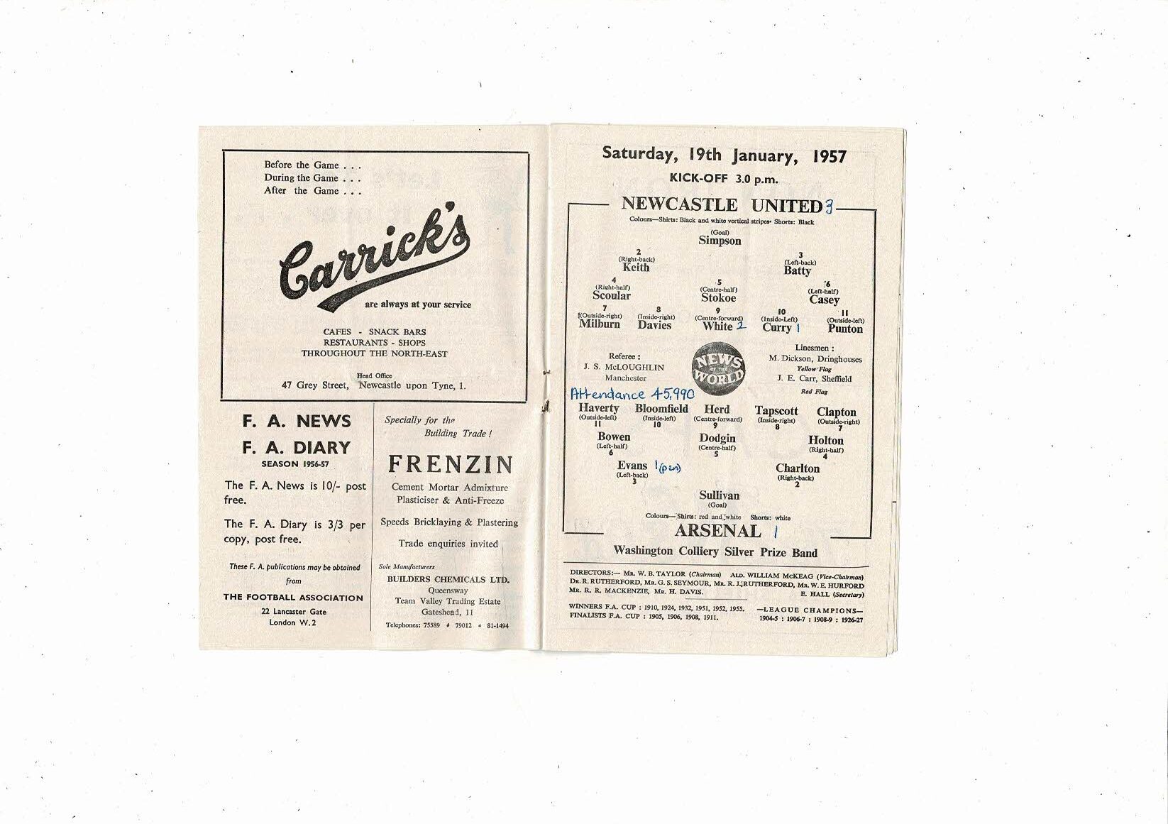 1956/57 Newcastle United v Arsenal Football Programme