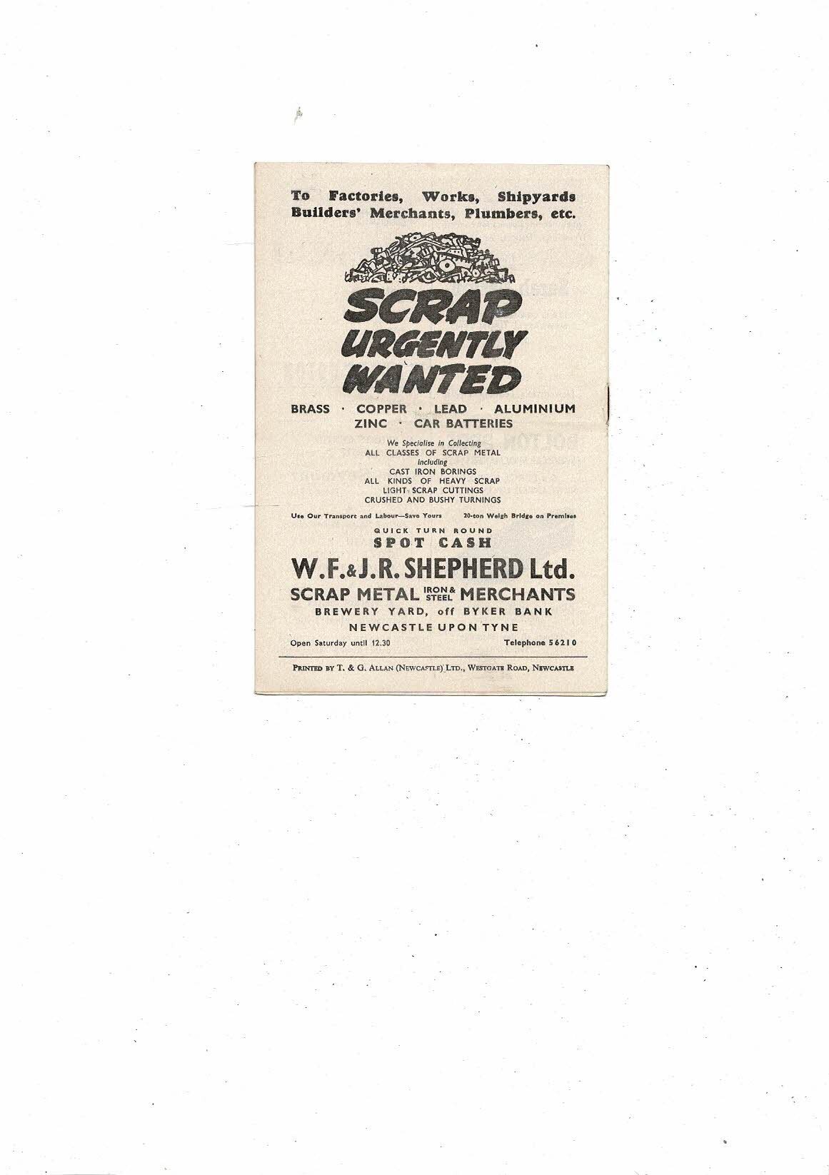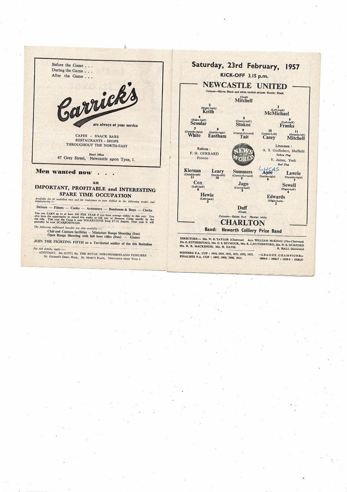 1956/57 Newcastle United v Charlton Athletic Football Programme