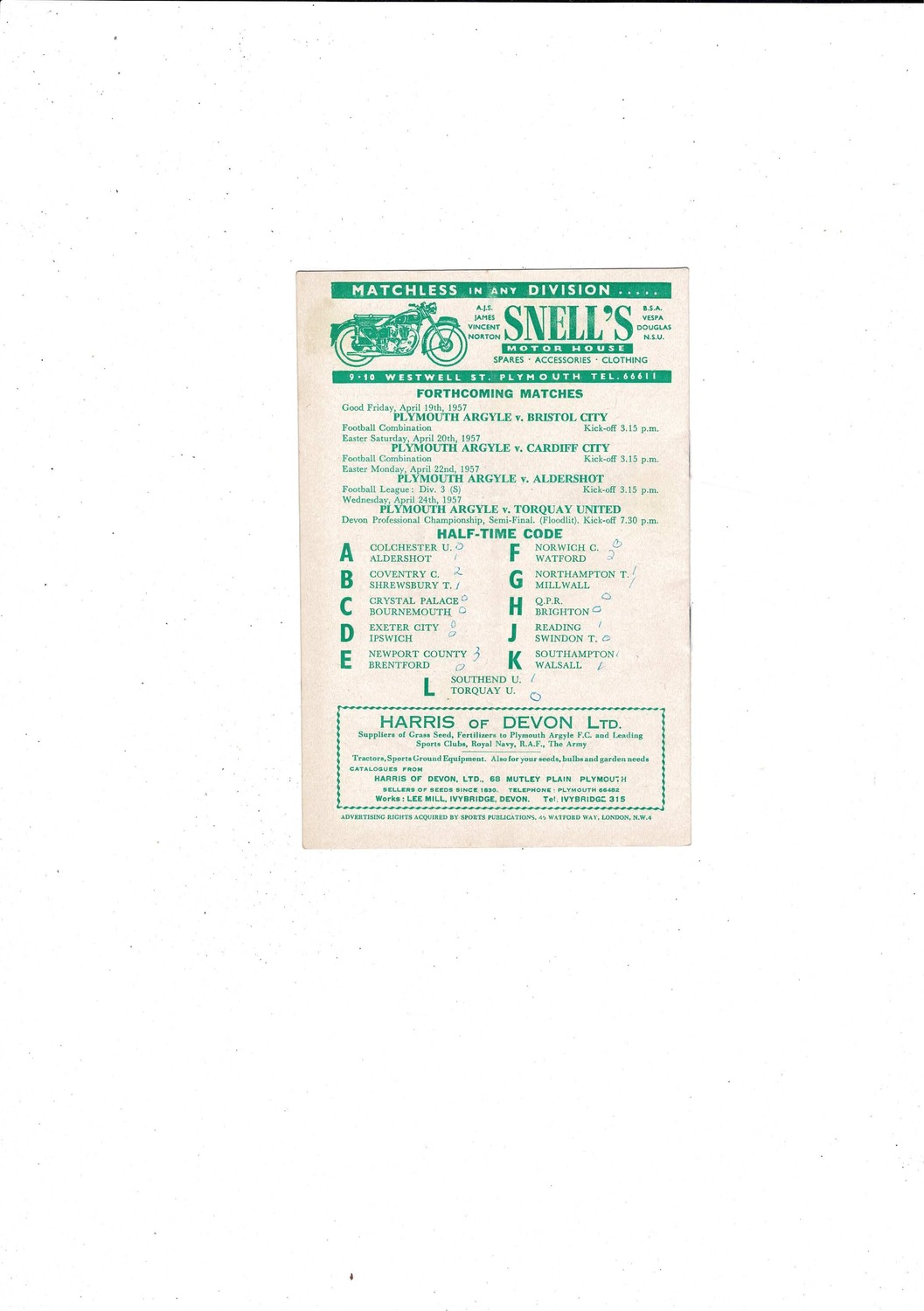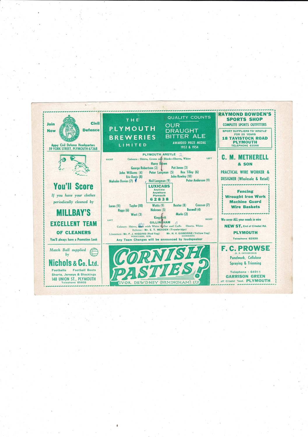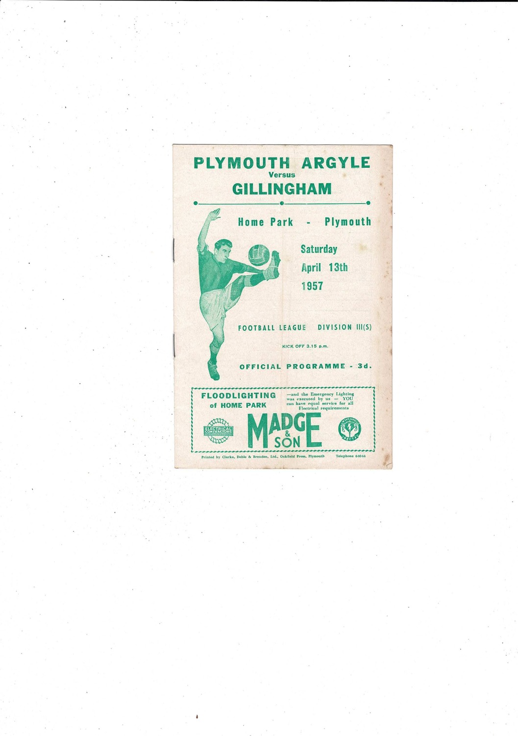 1956/57 Plymouth Argyle v Gillingham Football Programme