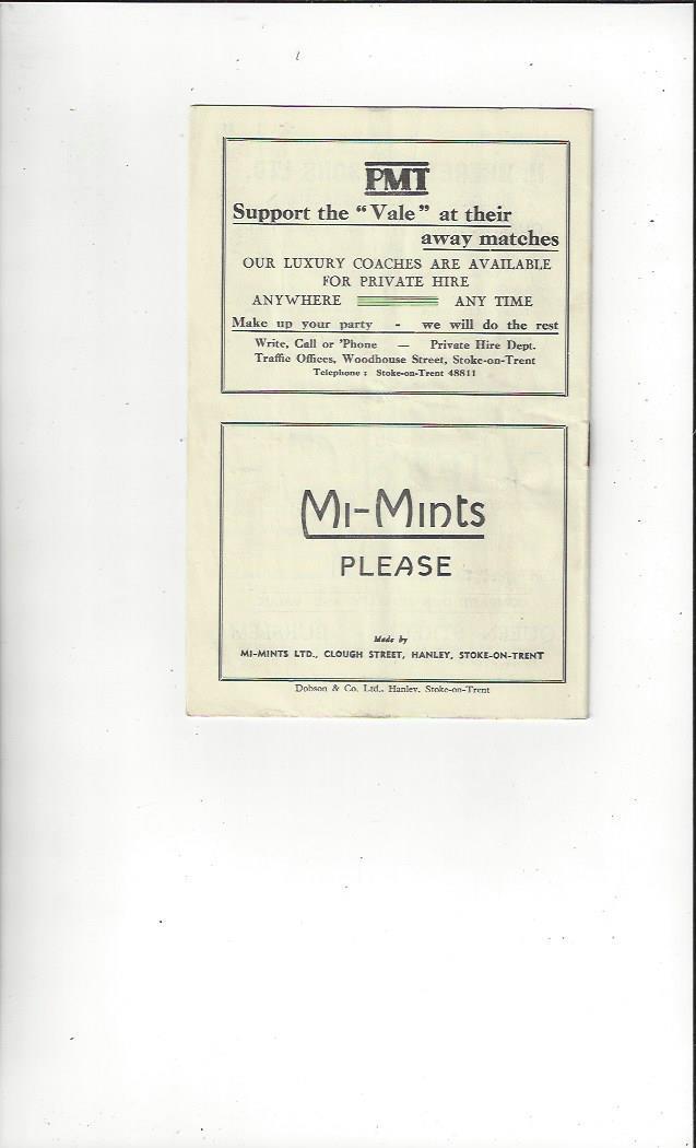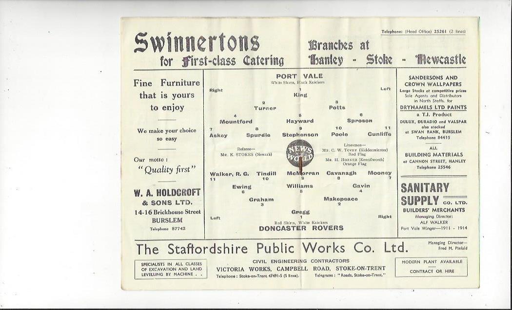 1956/57 Port Vale v Doncaster Rovers Football Programme