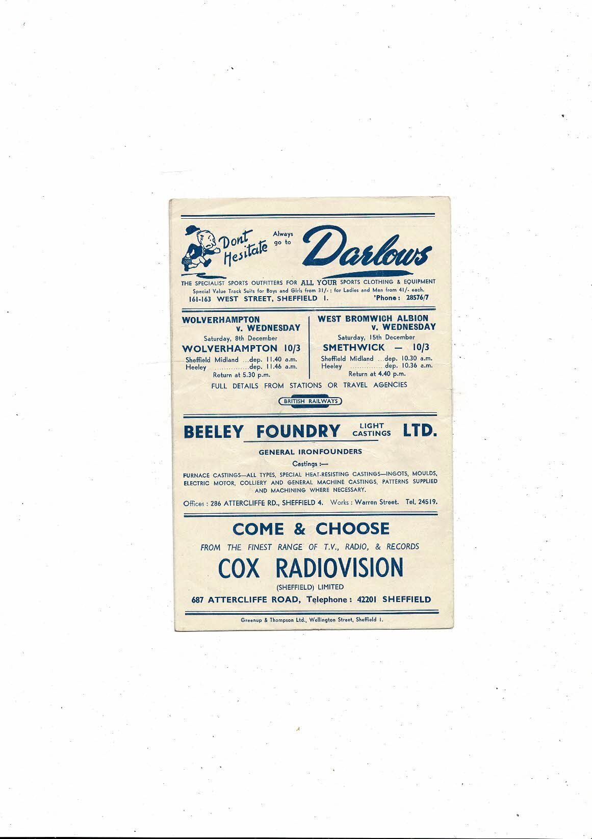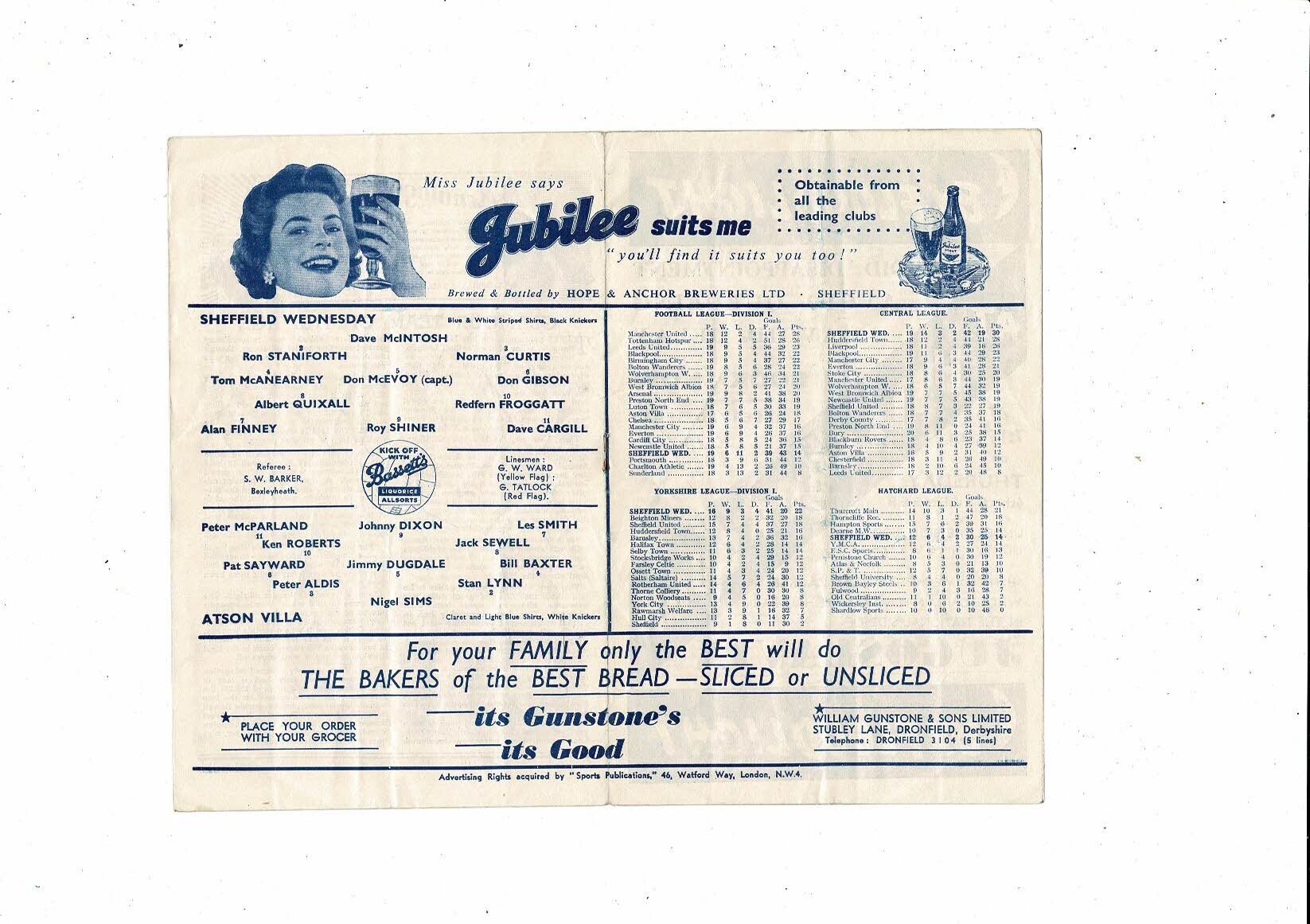 1956/57 Sheffield Wednesday v Aston Villa Football Programme