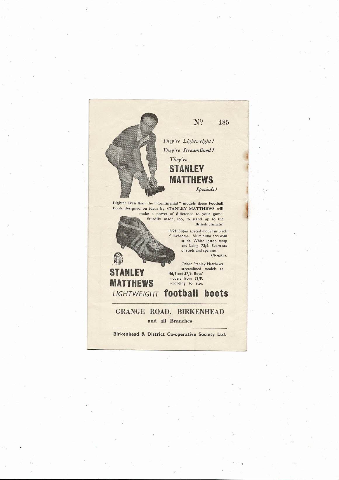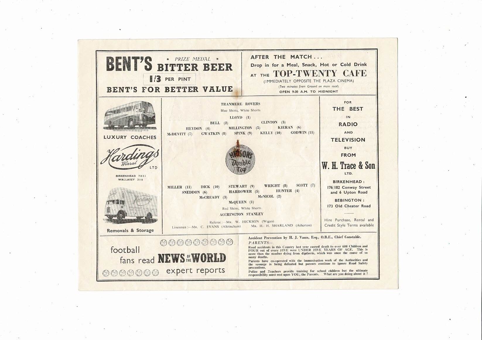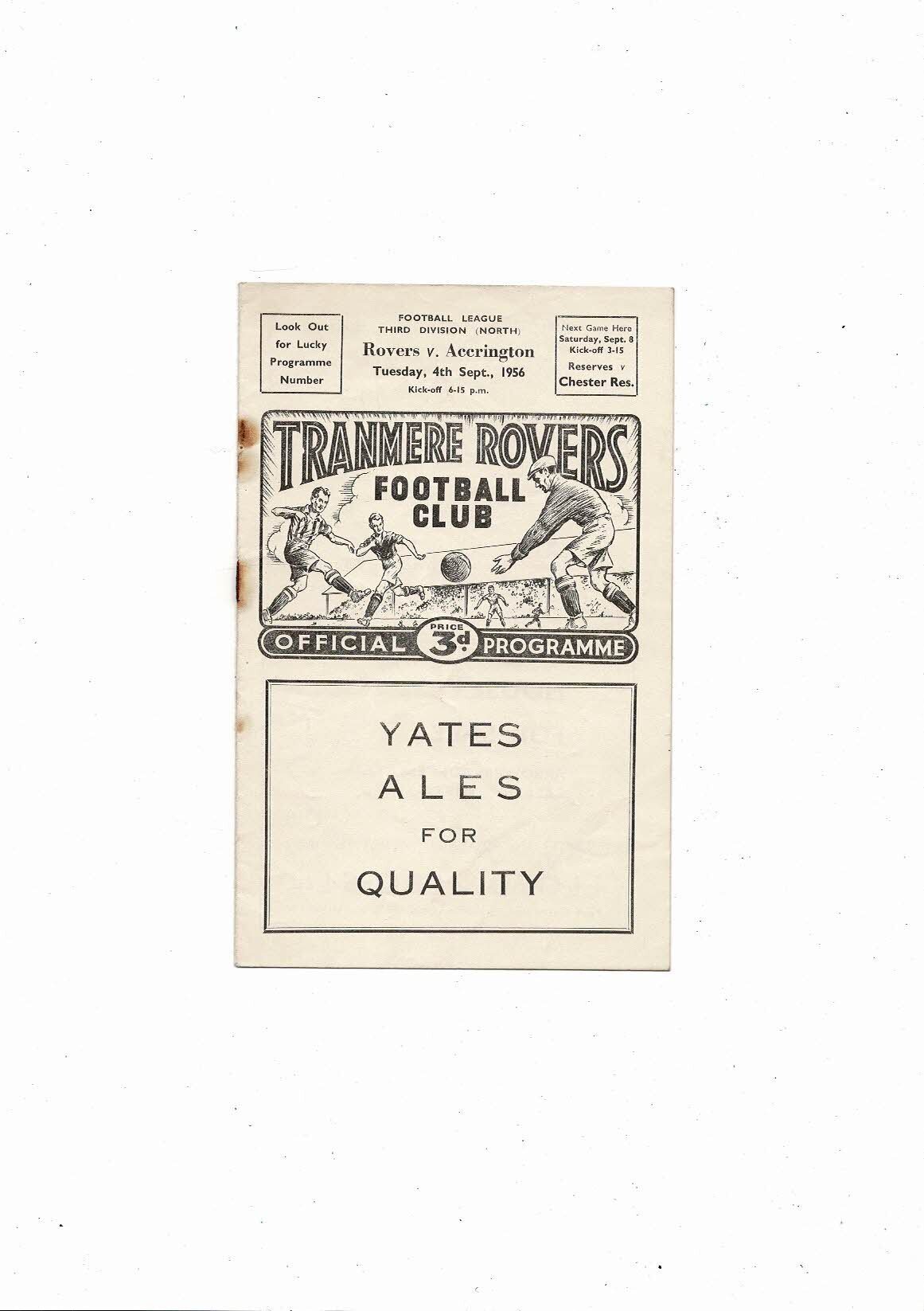 1956/57 Tranmere Rovers v Accrington Stanley Football Programme