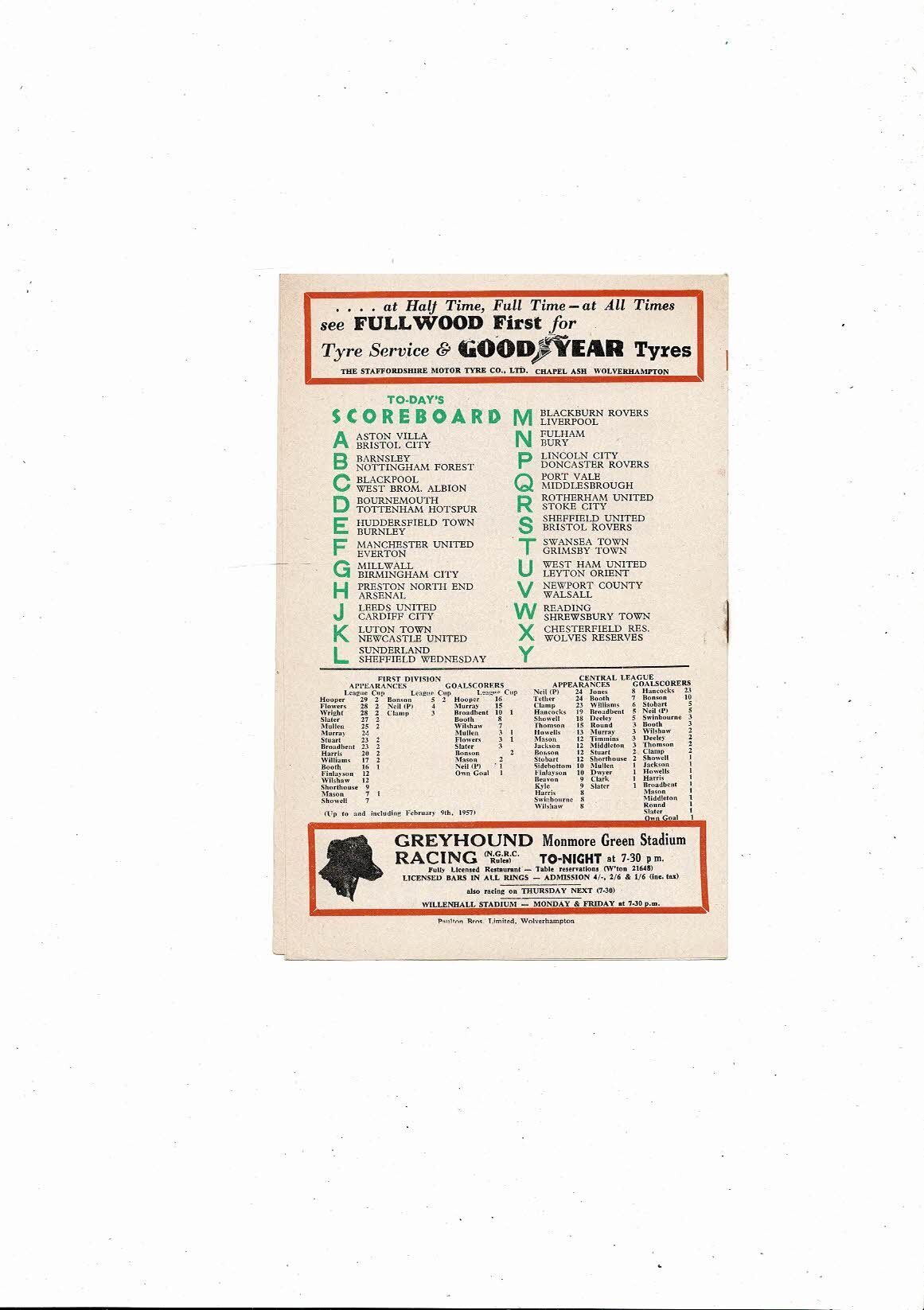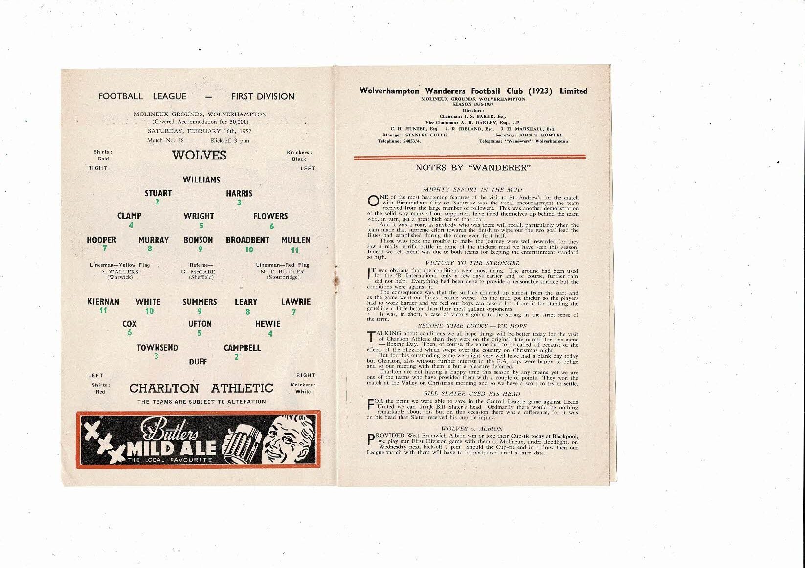 1956/57 Wolverhampton Wanderers v Charlton Athletic Football Programme