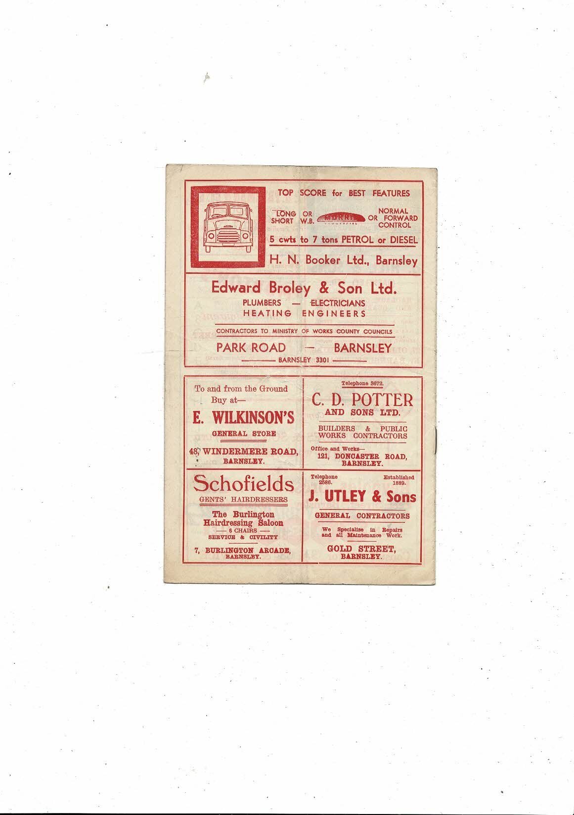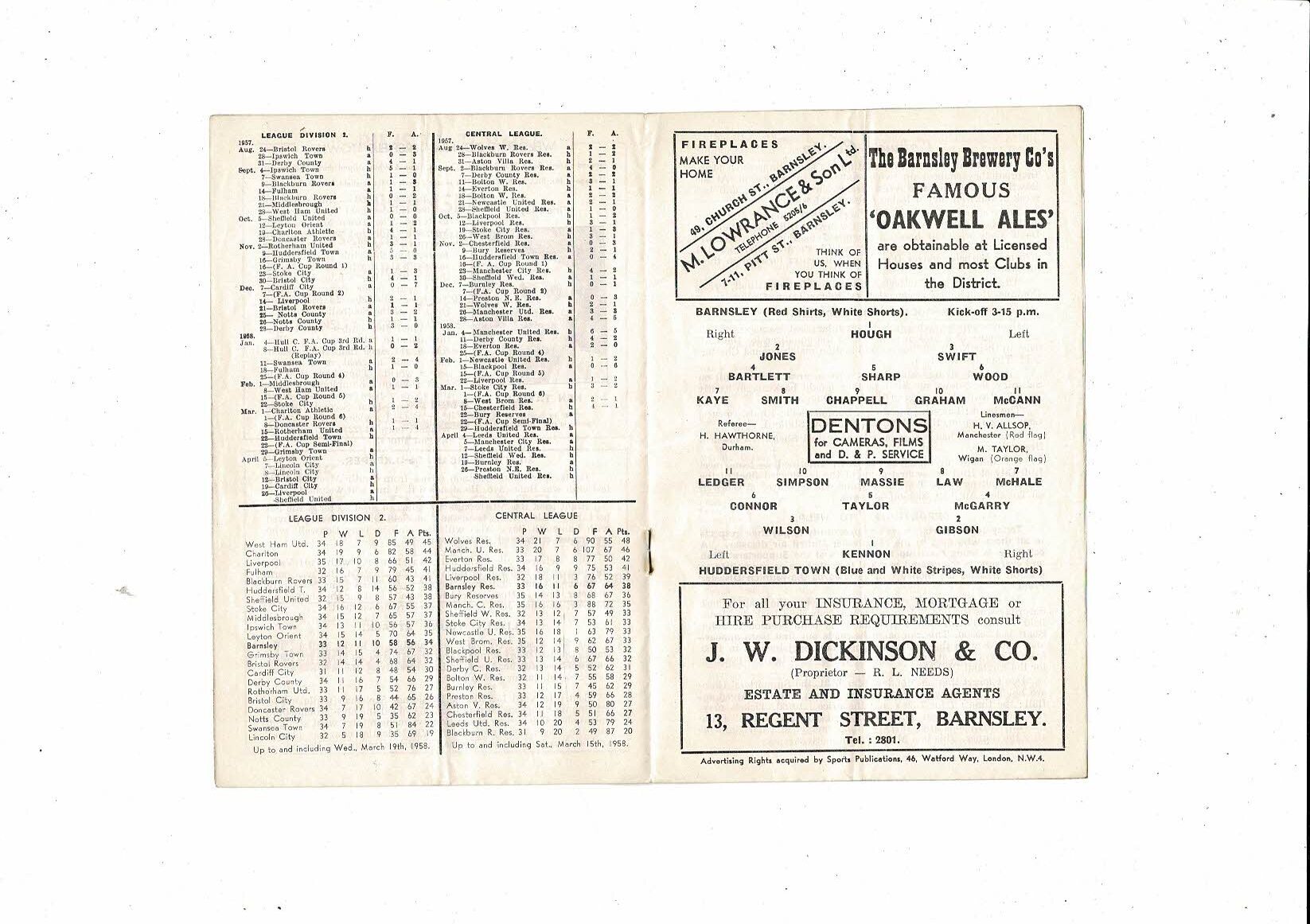 1957/58 Barnsley v Huddersfield Town Football Programme