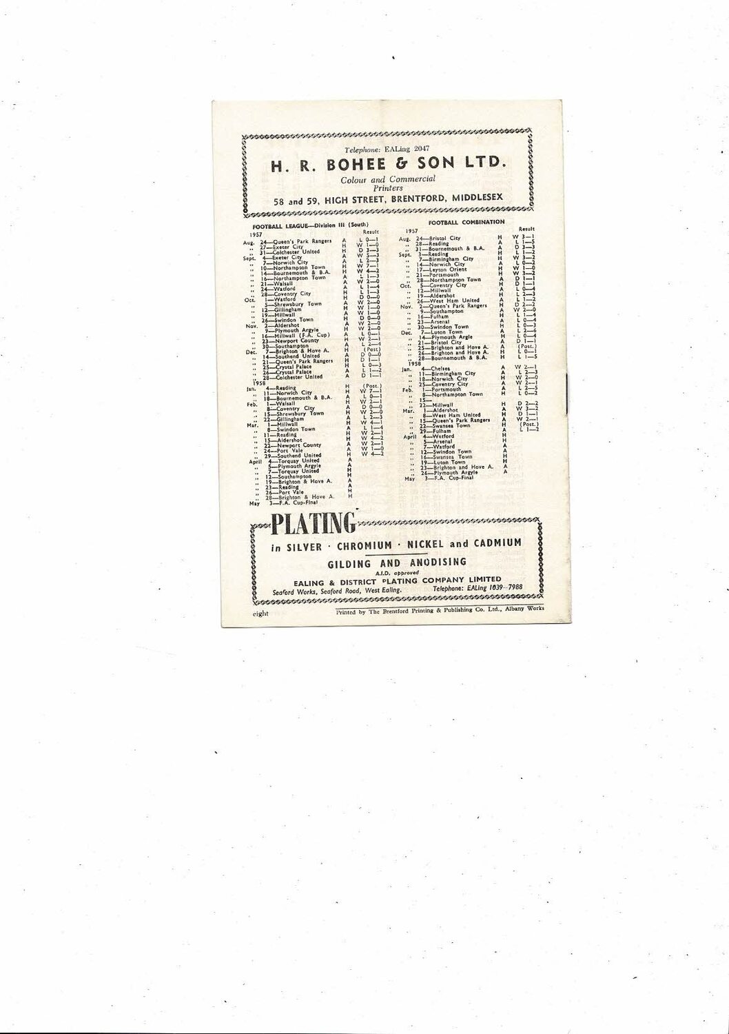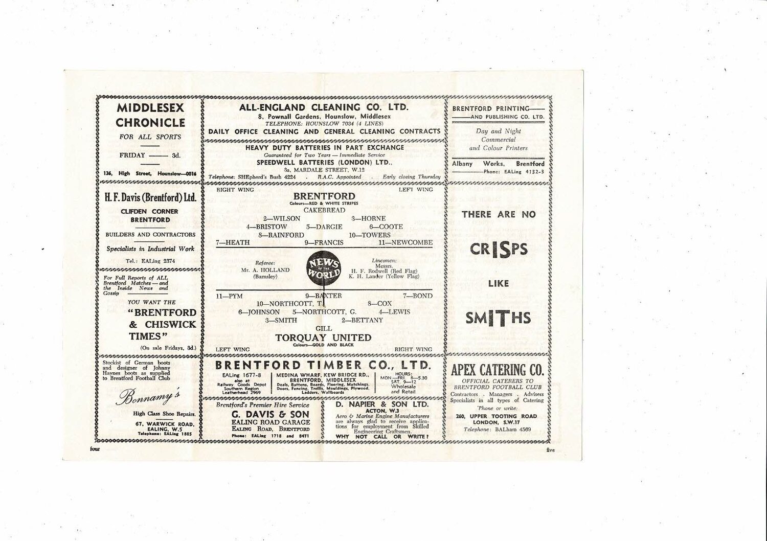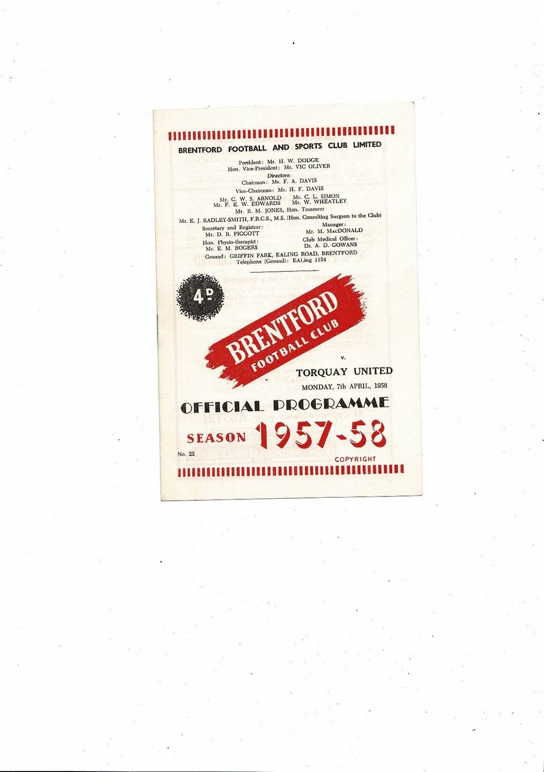1957/58 Brentford v Torquay United Football Programme