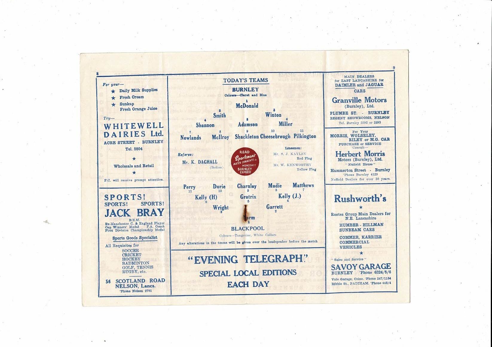 1957/58 Burnley v Blackpool Football Programme