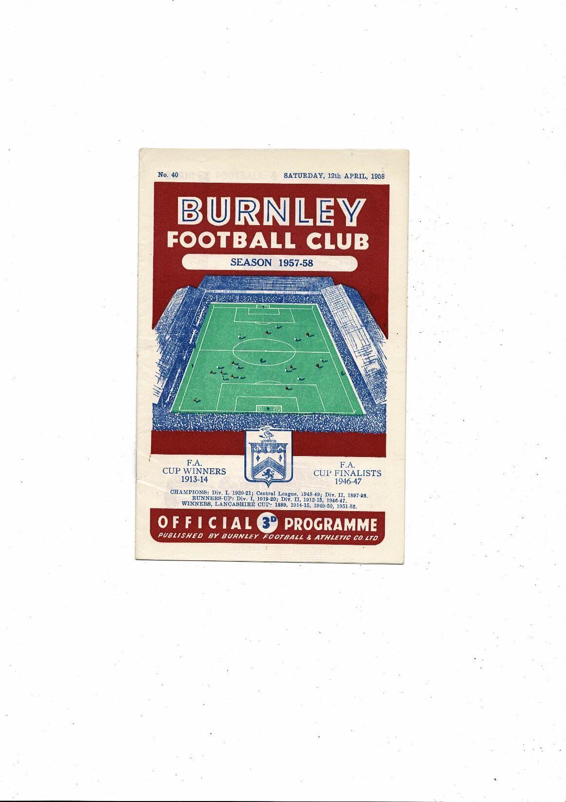 1957/58 Burnley v Wolves Football Programme