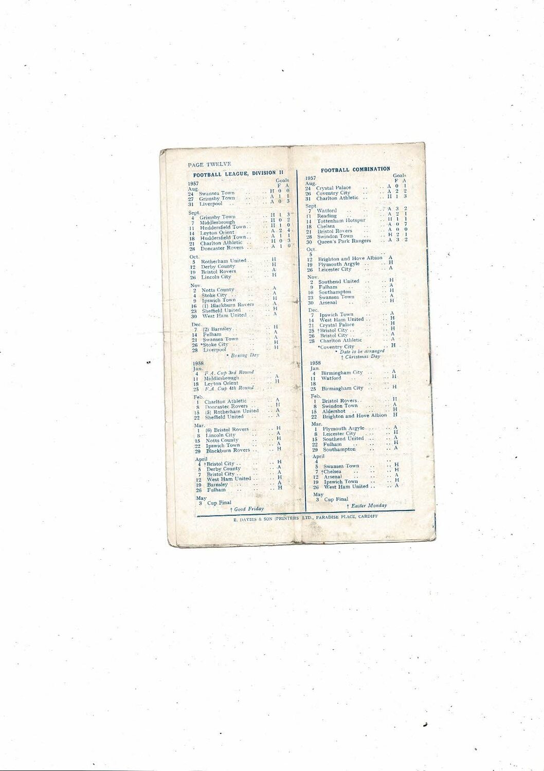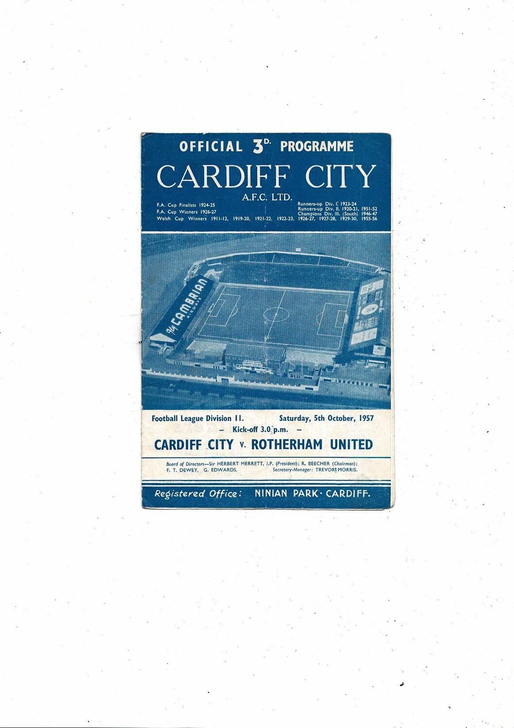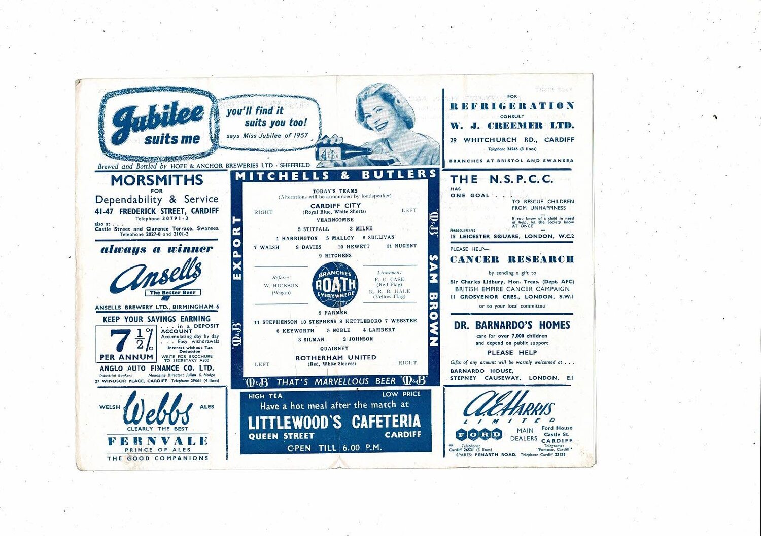 1957/58 Cardiff City v Rotherham United Football Programme