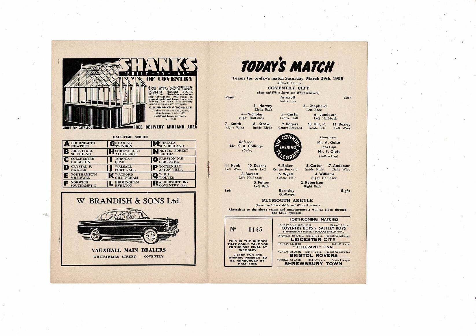 1957/58 Coventry City v Plymouth Argyle Football Programme