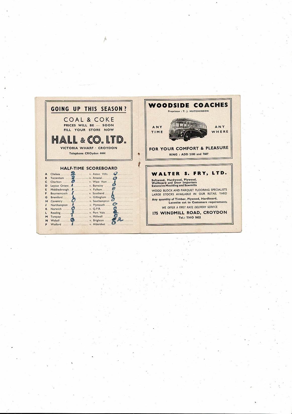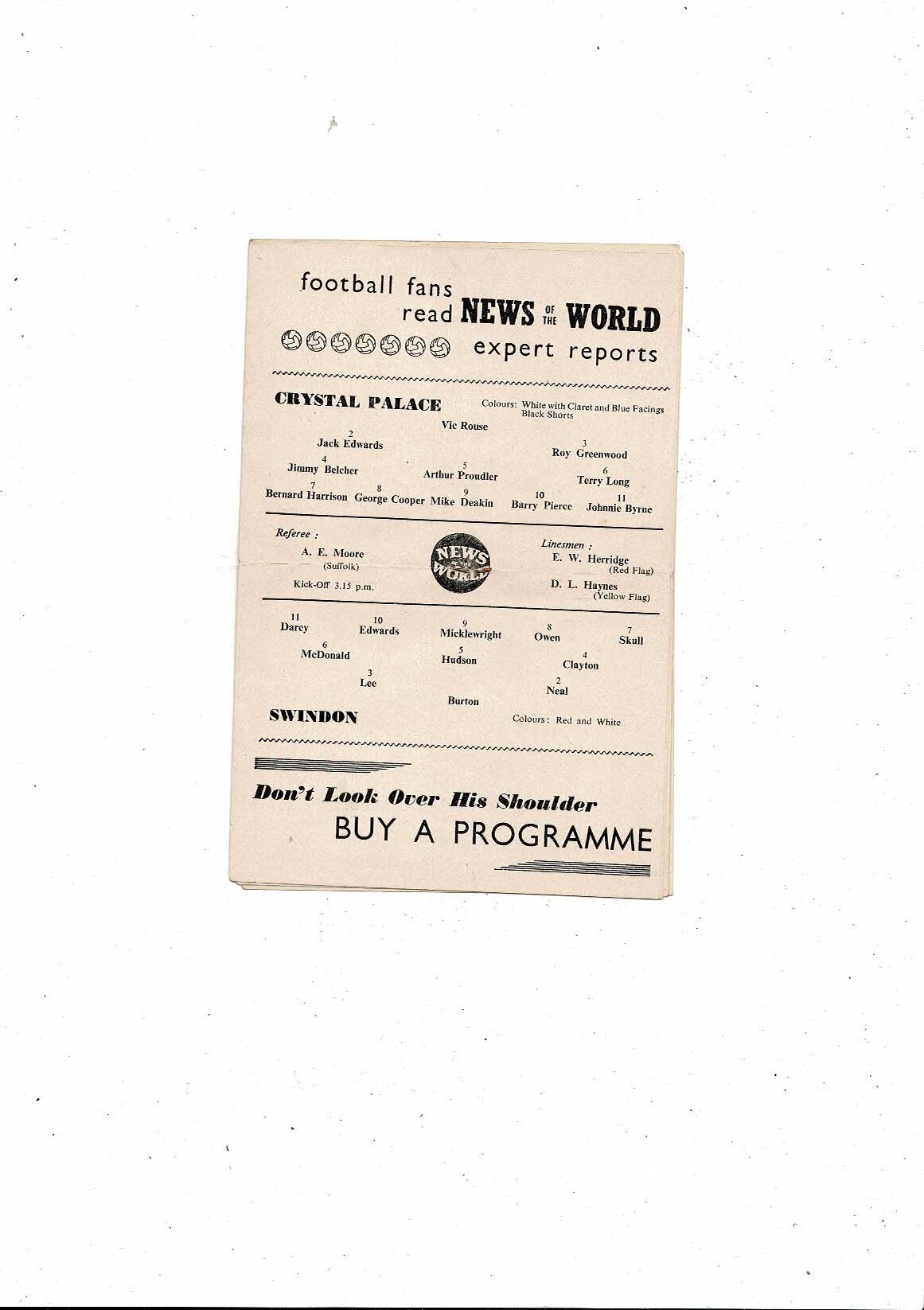 1957/58 Crystal Palace v Swindon Town Football Programme