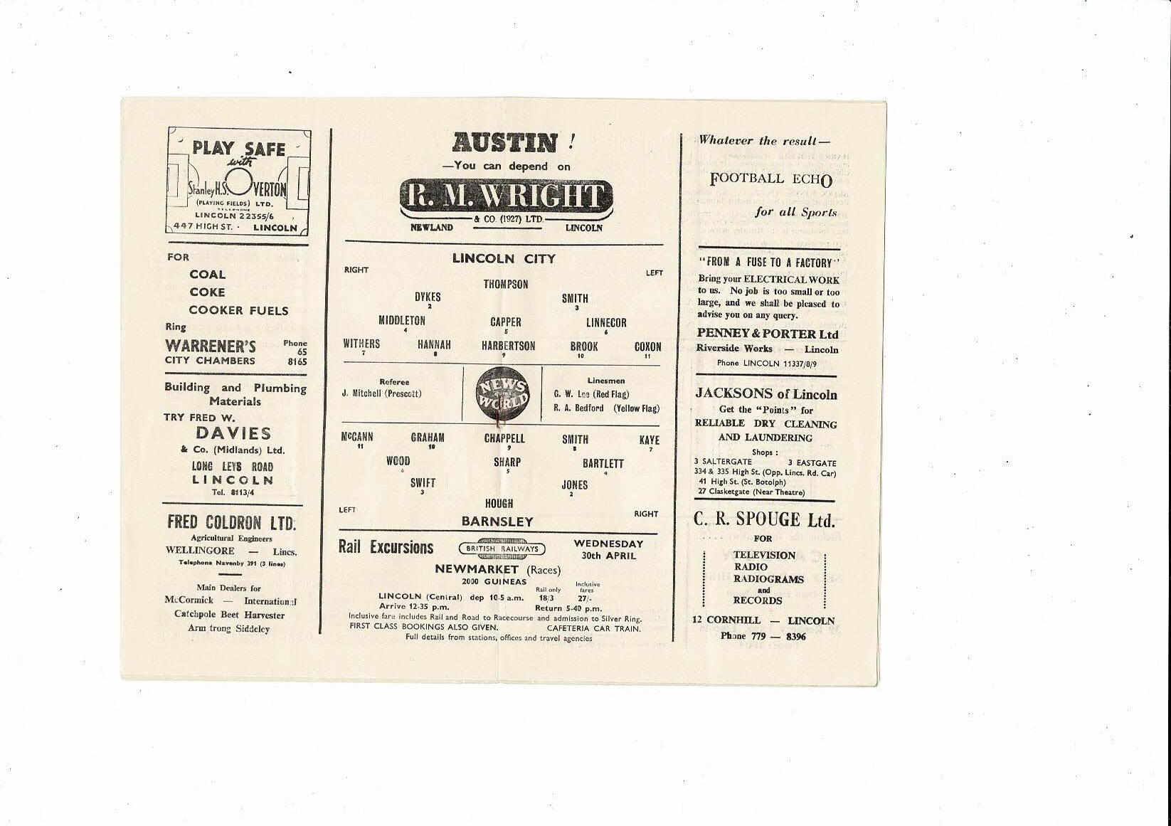 1957/58 Lincoln City v Barnsley Football Programme