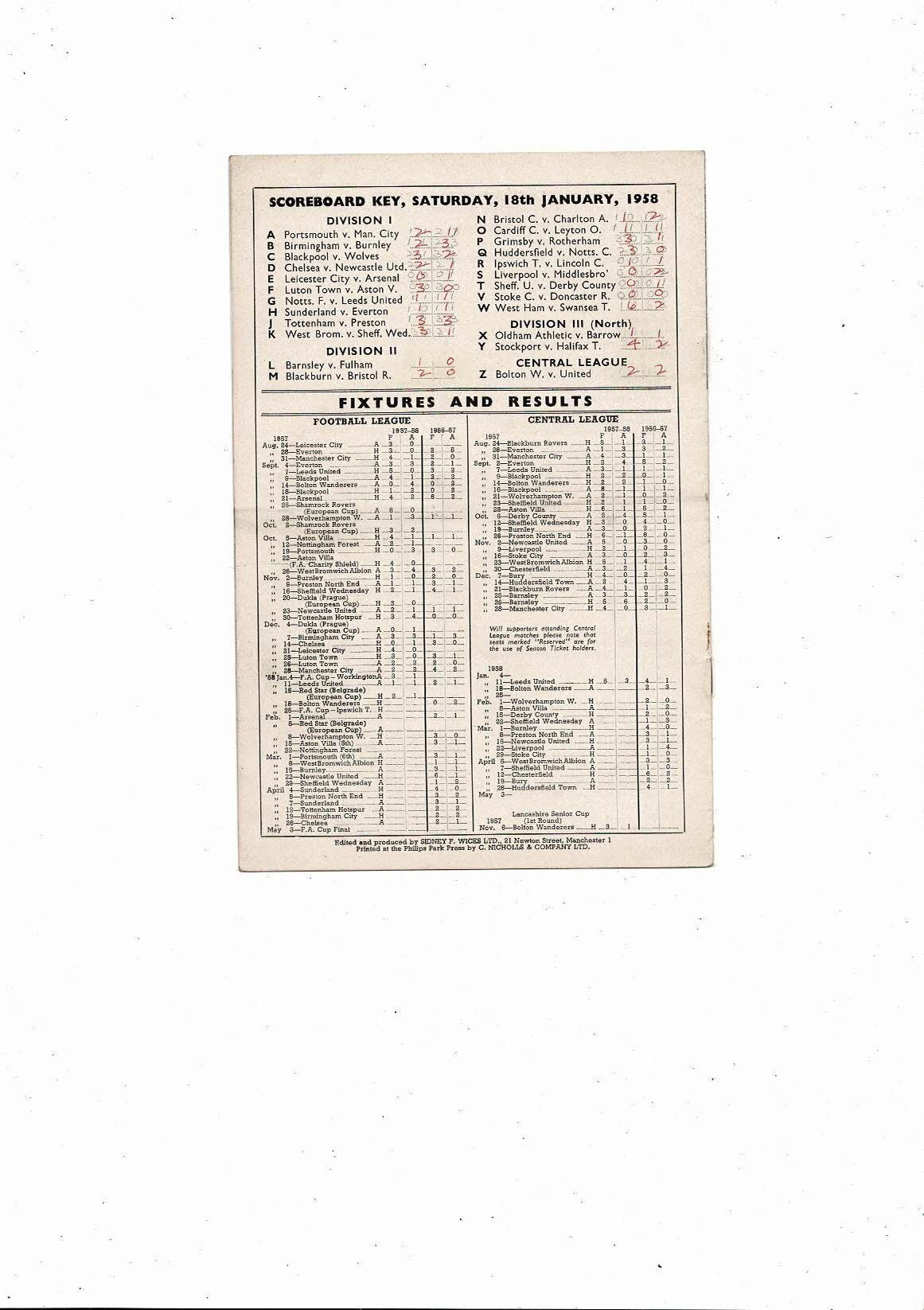 1957/58 Manchester United v Bolton Wanderers Football Programme