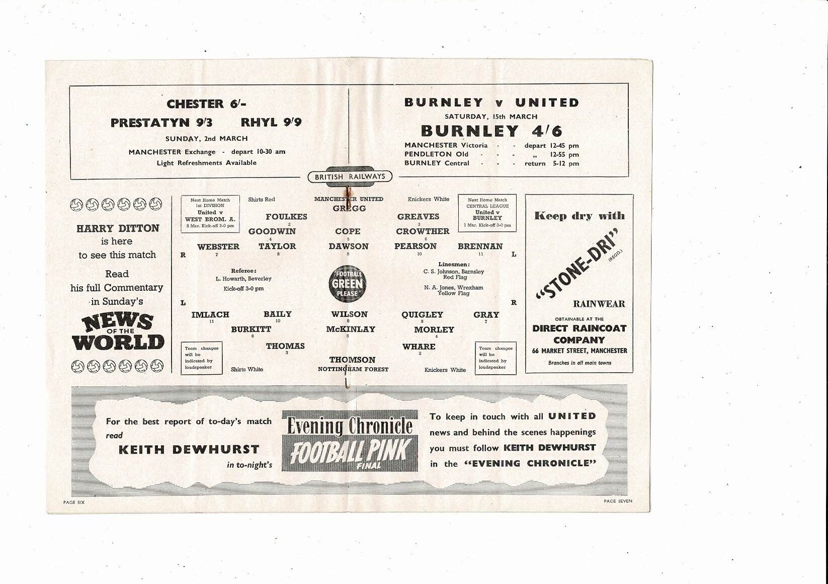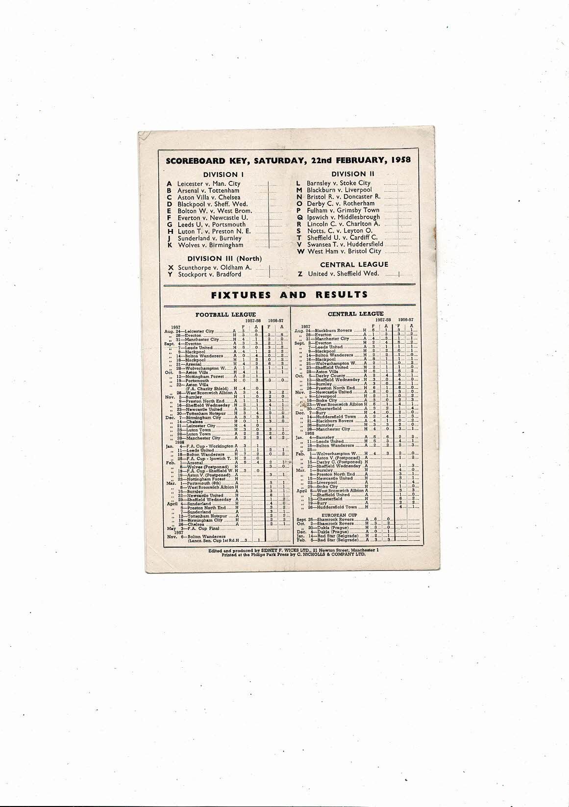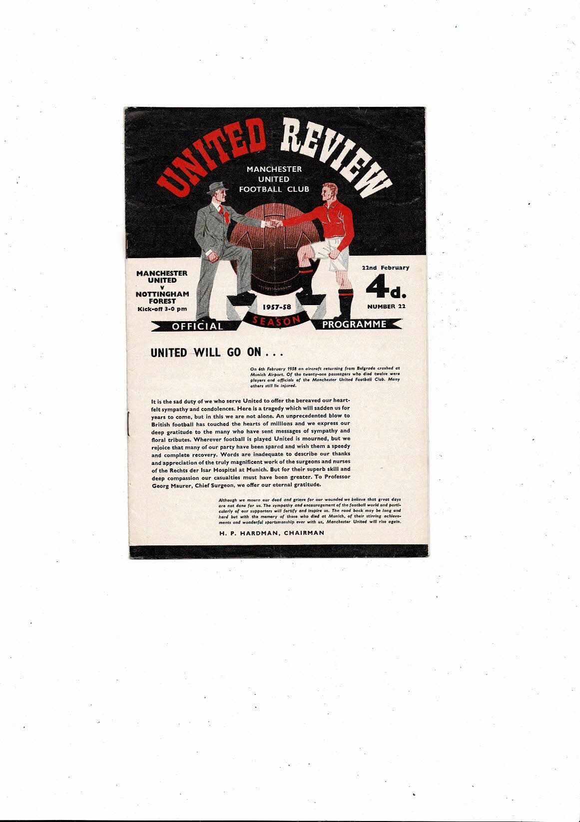 1957/58 Manchester United v Nottingham Forest Football Programme