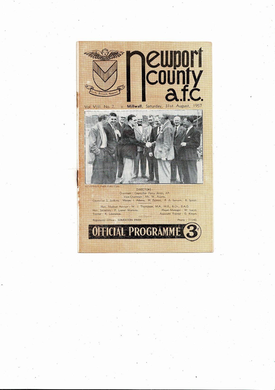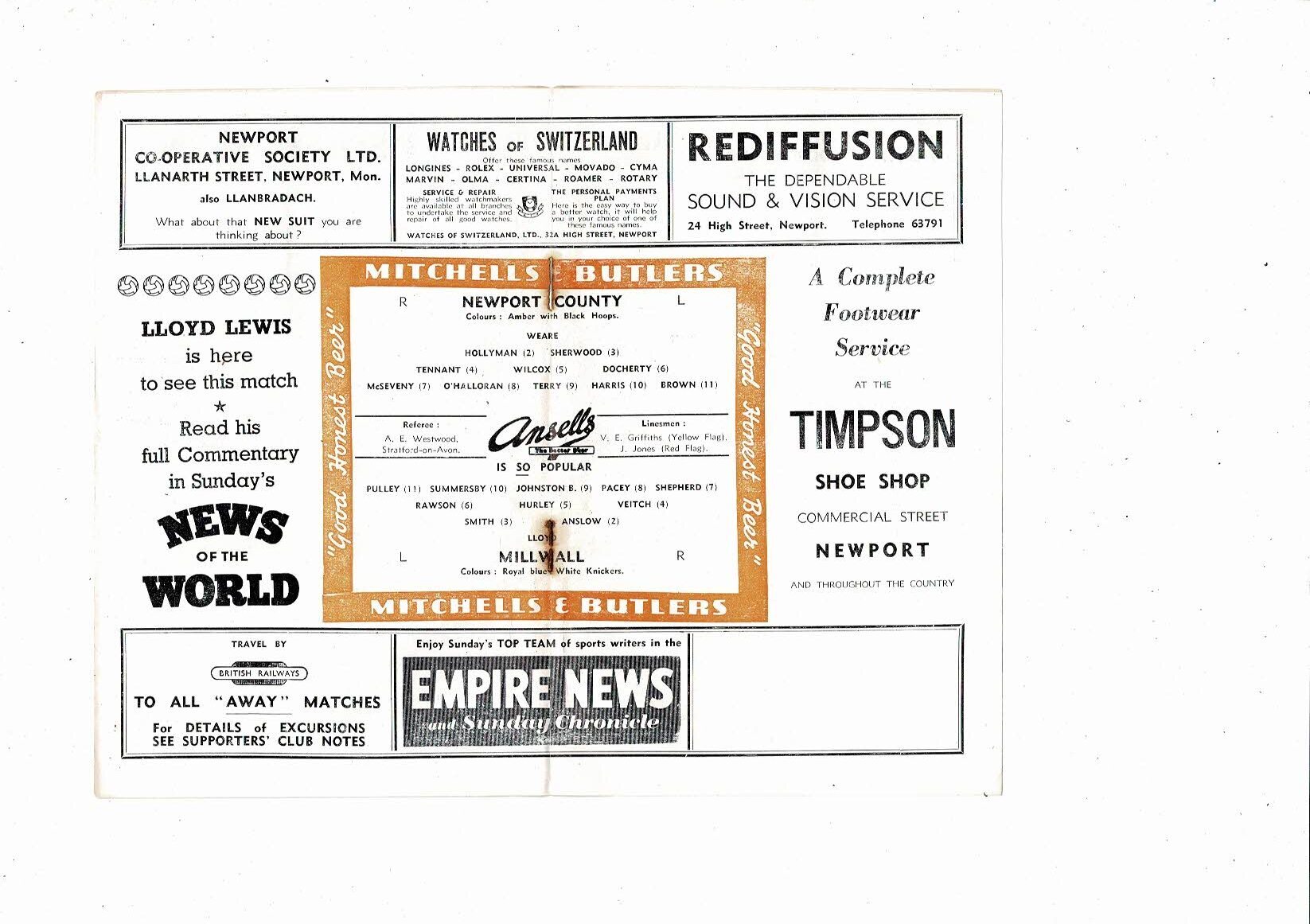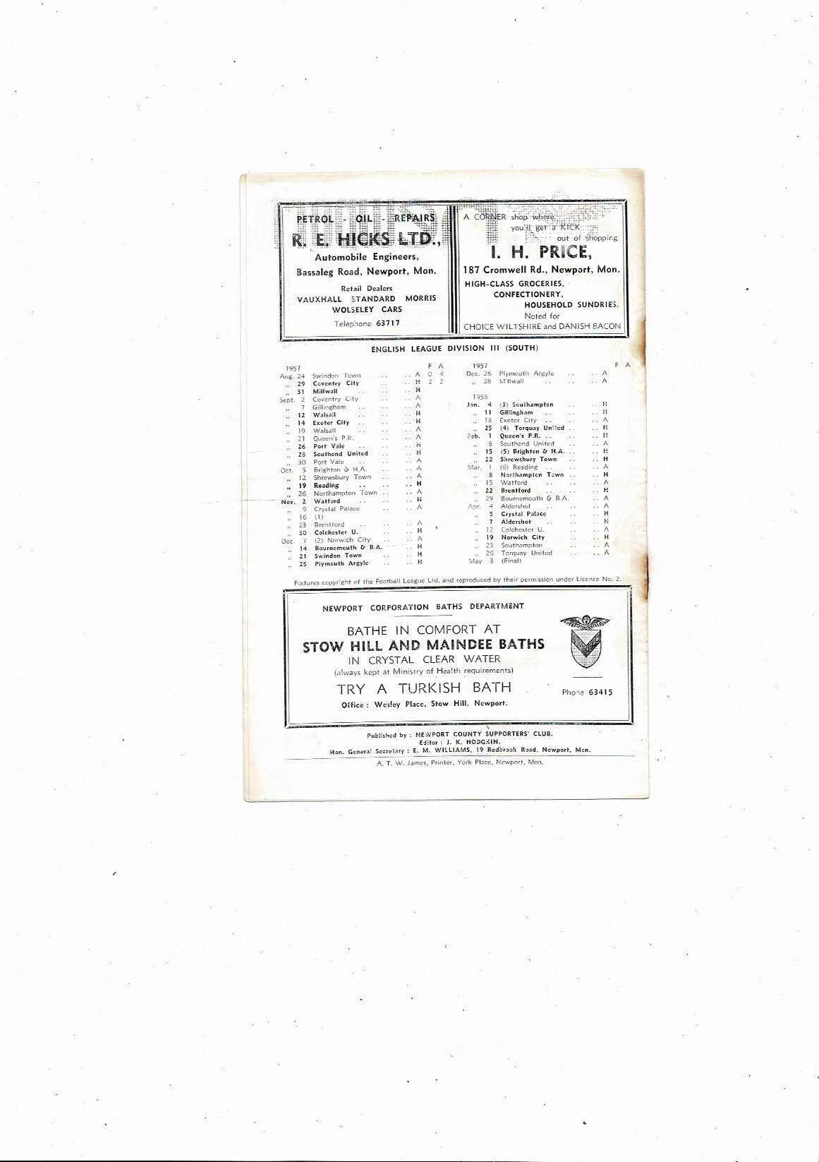 1957/58 Newport County v Millwall Football Programme