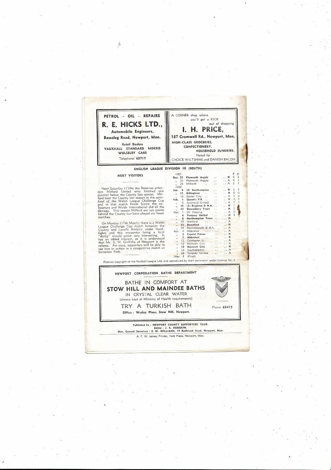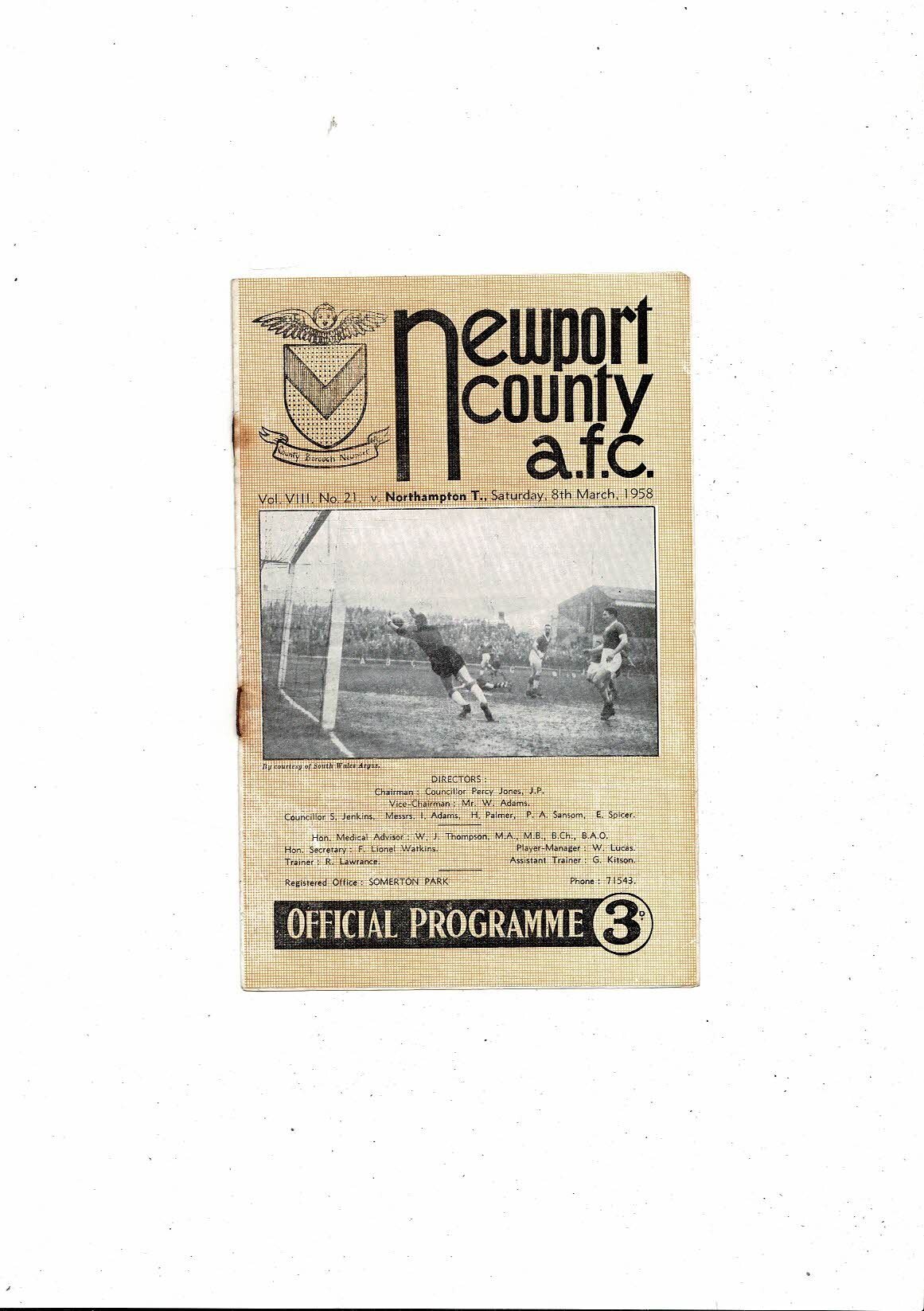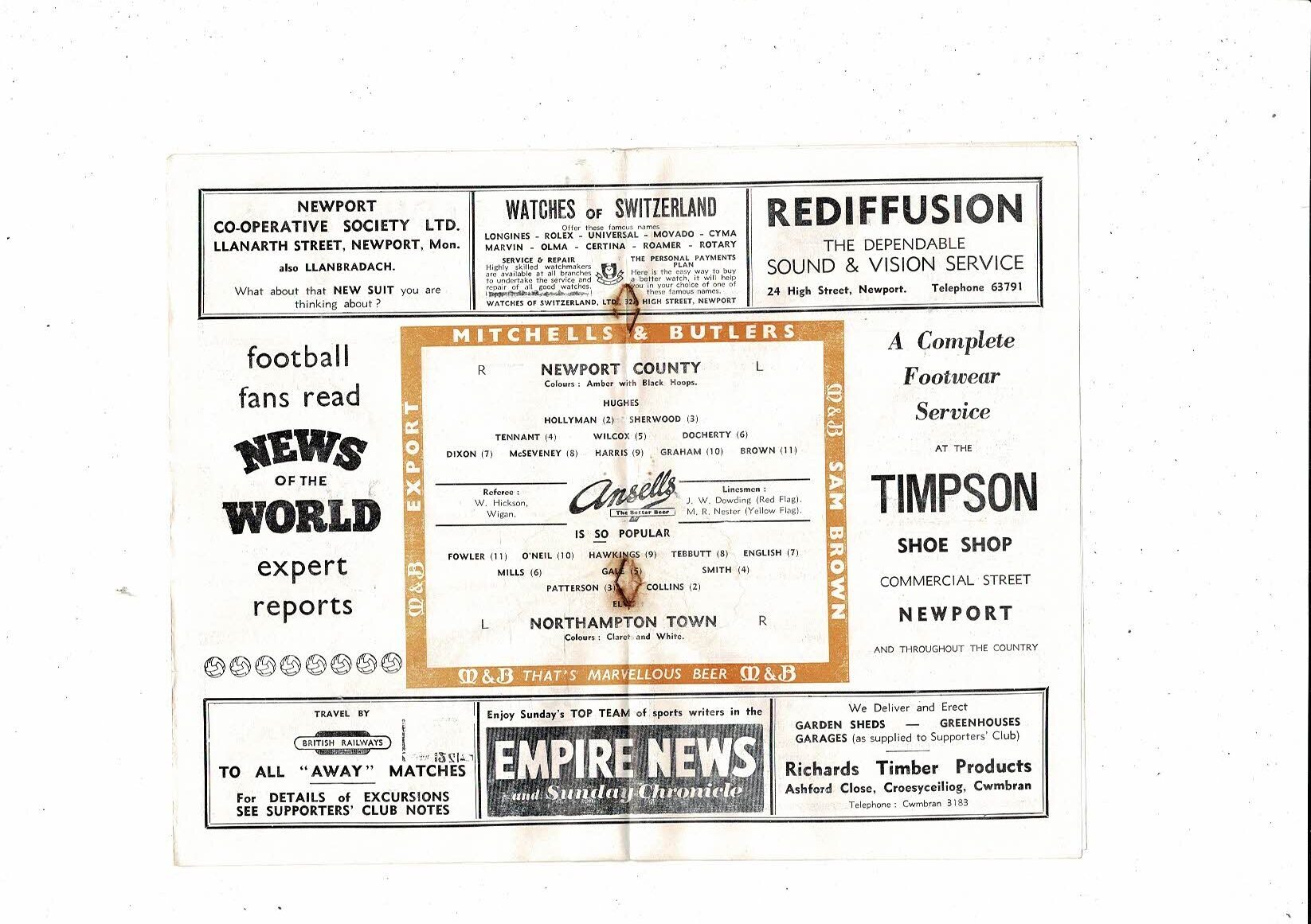 1957/58 Newport County v Northampton Town Football Programme