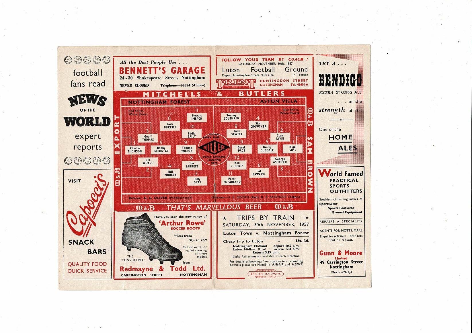 1957/58 Nottingham Forest v Aston Villa Football Programme