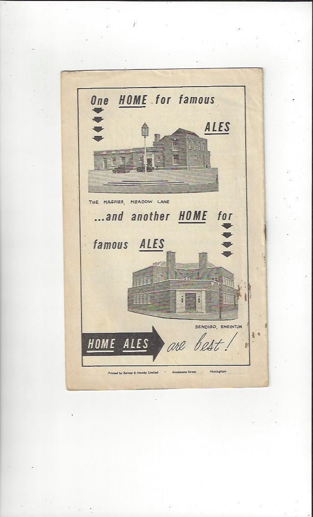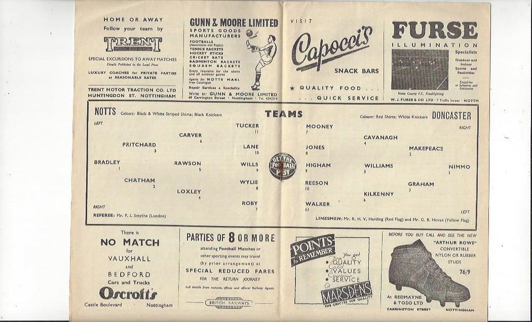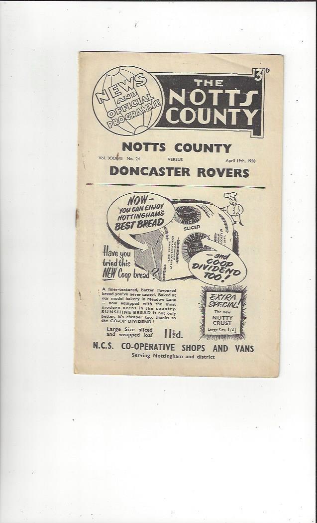 1957/58 Notts County v Doncaster Rovers Football Programme