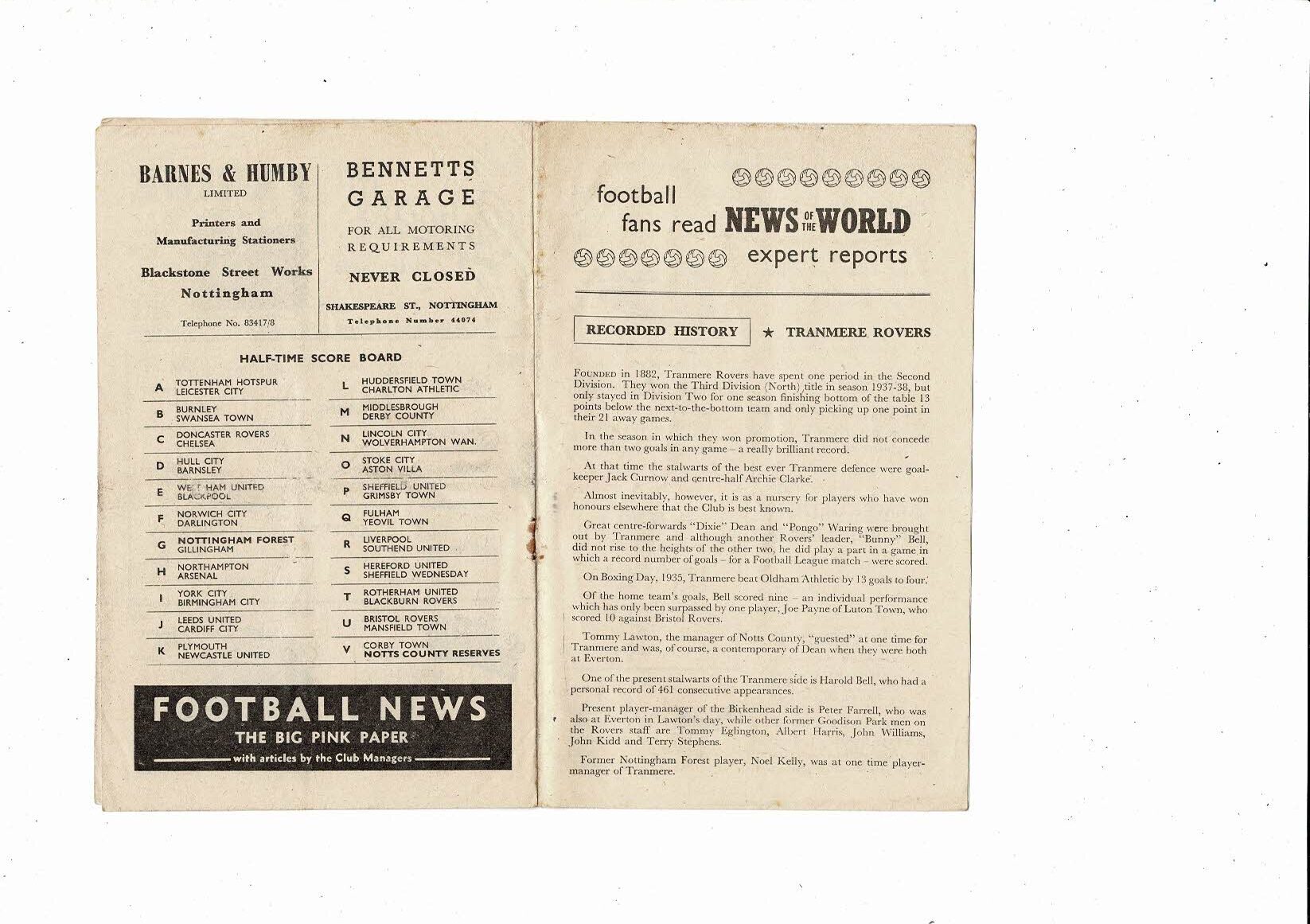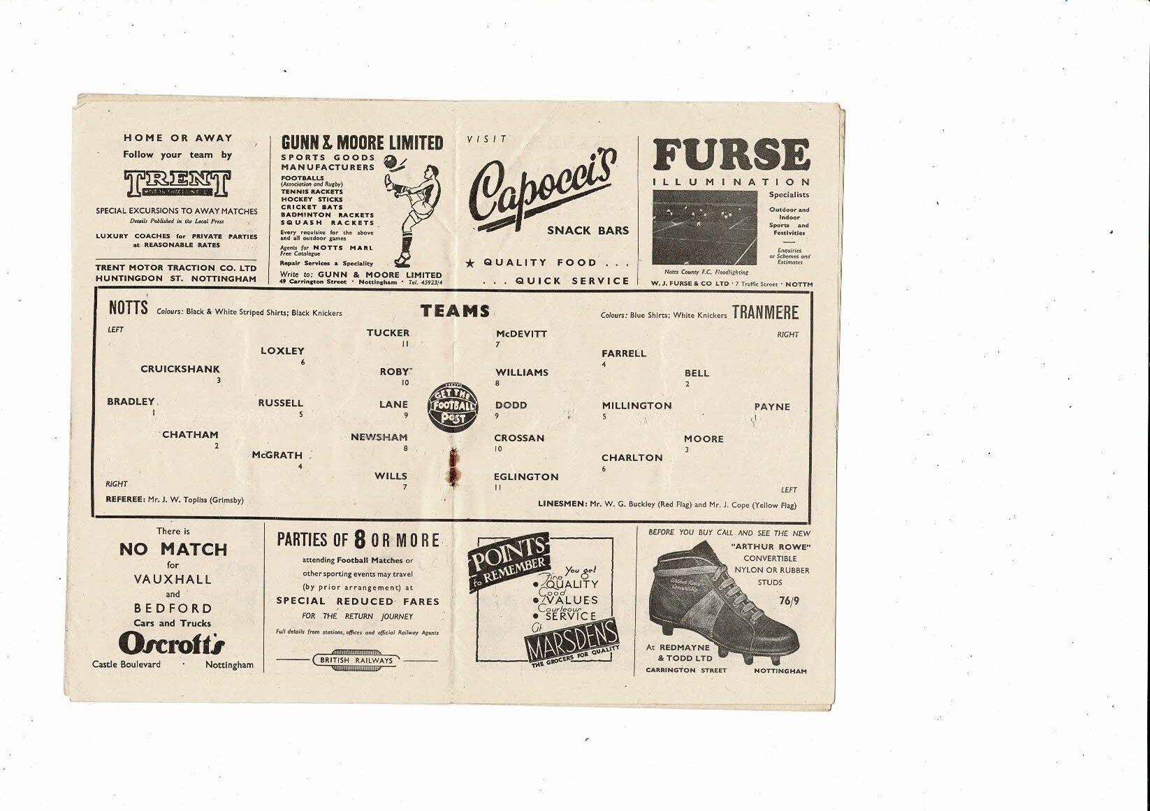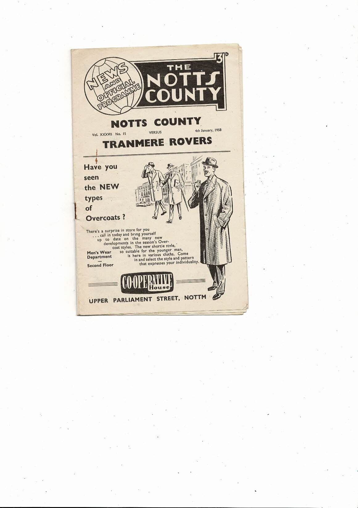 1957/58 Notts County v Tranmere Rovers FA Cup Football Programme